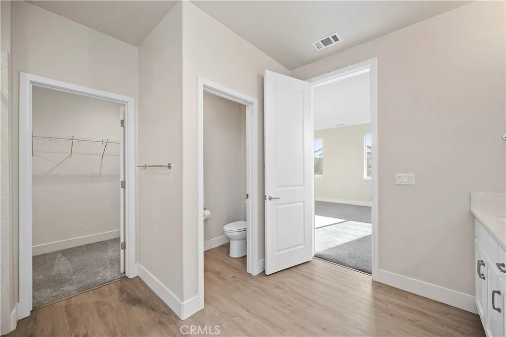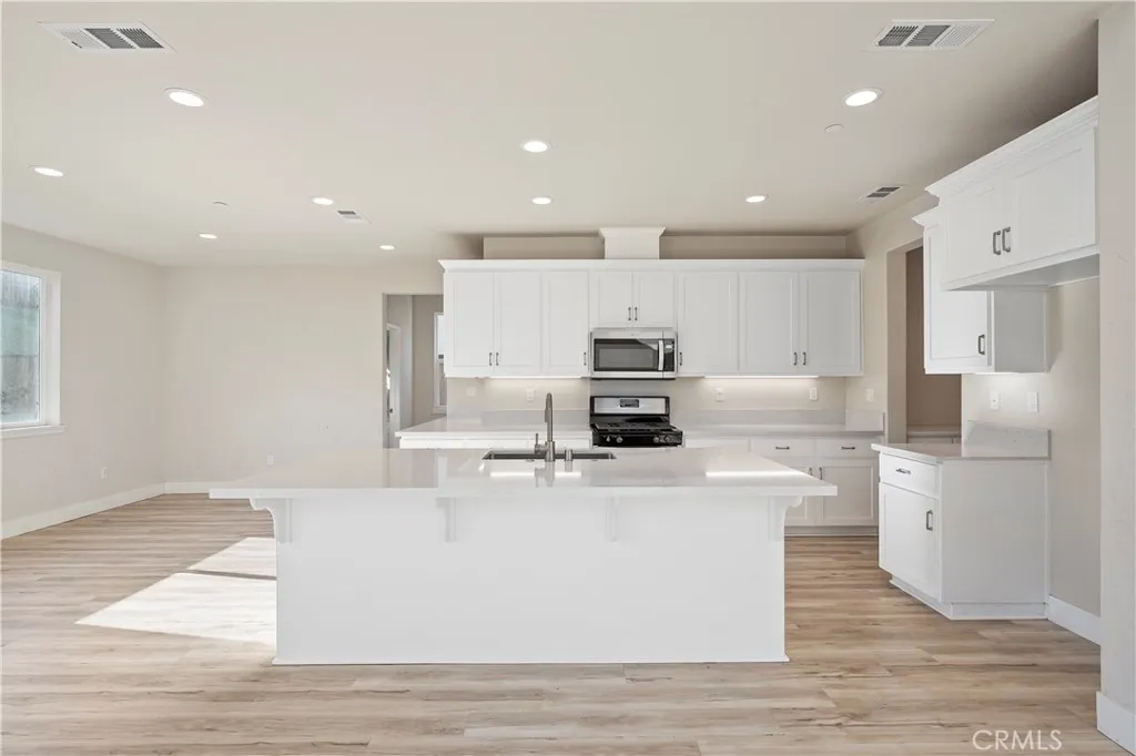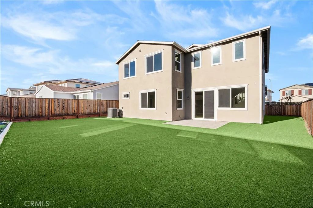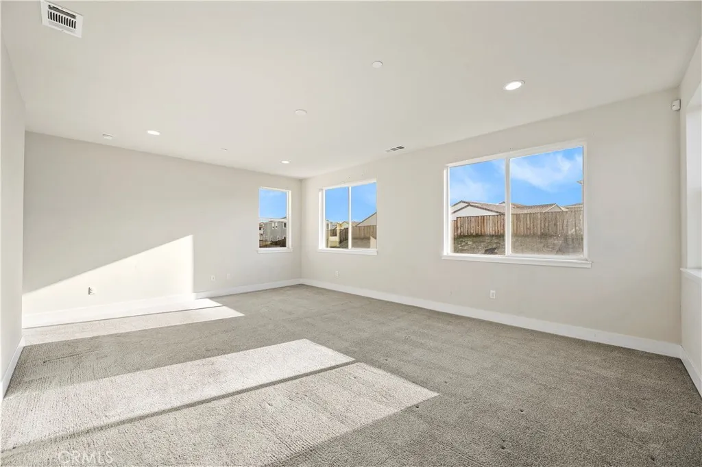 Welcome to luxury living at its finest in this expansive and upgraded Plan 5, the largest and most coveted floor plan in The Hills Park Ridge. Featuring 5 spacious bedrooms,4 full bathrooms, and a versatile loft, this home offers the perfect blend of comfort, style, and functionality. Step into a bright and airy open-concept layout with soaring vaulted ceilings, energy efficient sun-filled windows, recessed LED lighting, and sleek plank flooring throughout the main areas. The chef's kitchen is a showstopper with stone countertops, stainless steel appliances, a large island with breakfast bar, and a walk-in pantry. The main level includes two bedrooms and two full bathrooms. Upstairs, retreat to the luxurious primary suite with an ample walk-in closet, dual-sink vanity, soaking tub, and separate shower. Plush carpeting adds warmth and comfort to the upper level, which also includes a laundry room and an open loft overlooking the living room below. Enjoy California outdoor living in the low-maintenance backyard, beautifully designed with pavers and artificial turf-perfect for entertaining or relaxing year-round. Located just steps from Julpun park, featuring sports fields, a dog park, and BBQ areas.