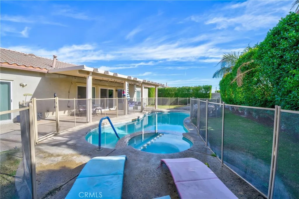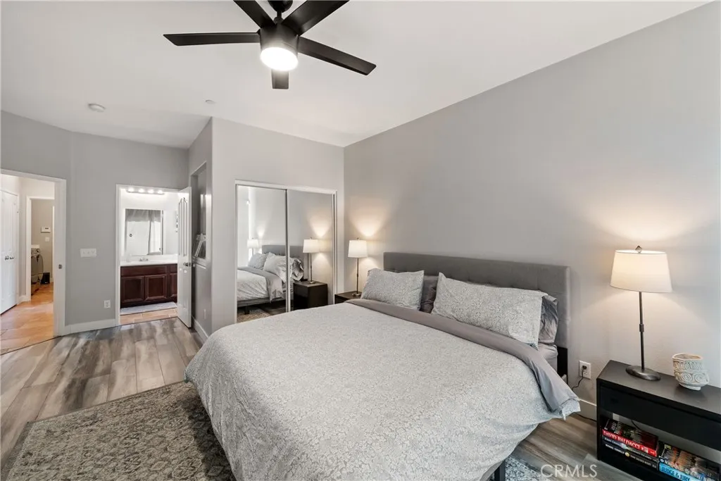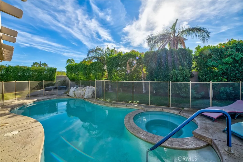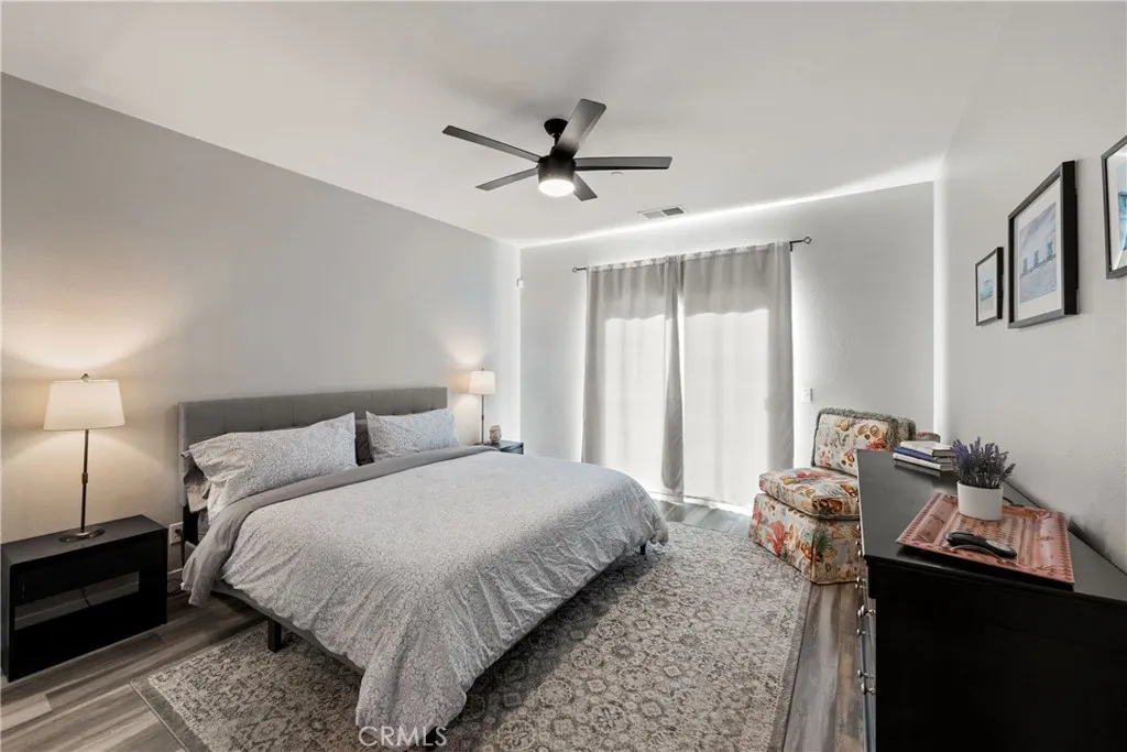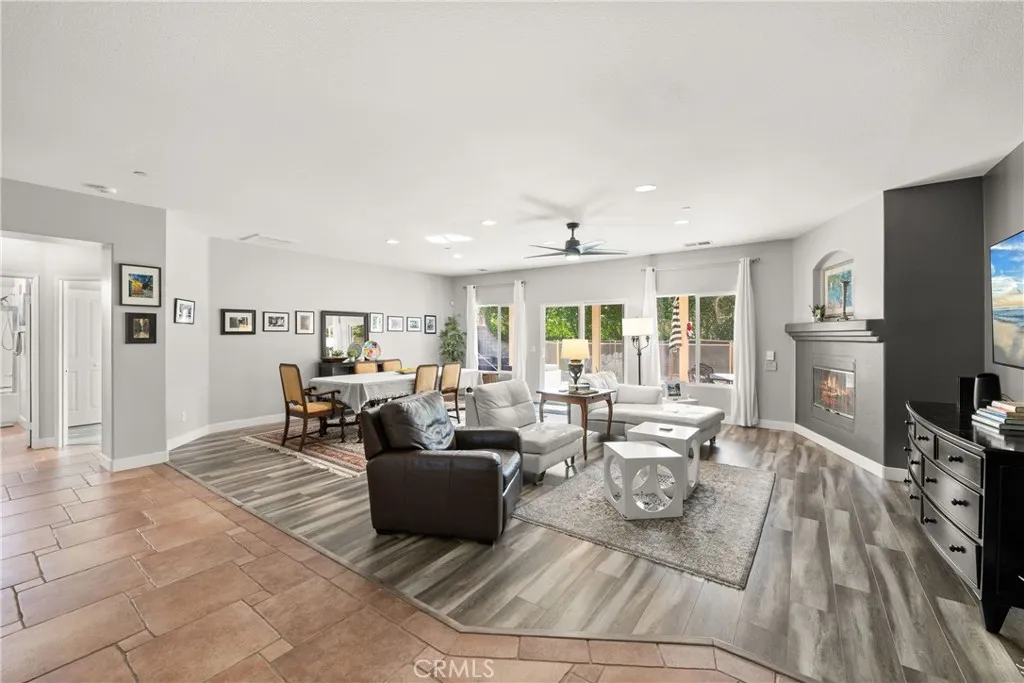 Nestled in a serene, gated neighborhood just minutes from the vibrant heart of downtown Palm Springs, Mountain Gate's Bella Model offers 3 bedrooms and 2 baths with an attached Casita for a perfect blend of comfort, style, and convenience. The home boasts a spacious open floor plan, and the attached casita/4th bedroom/3rd bath, has its own entrance, perfect for guests or private office space. Entering the home, you immediately feel the calm, inviting energy as the view of the backyard welcomes you. An entertainers delight, with the flow of the living areas opening onto the rear patio, allowing guests to enjoy both indoor and outdoor conversations. The gas fireplace in the living area is perfect for cozy relaxation on those cooler evenings. In 2021, the home was freshly painted, new 4 baseboards added, beautiful new luxury laminate flooring throughout the living areas and bedrooms installed, offering a sleek and low-maintenance aesthetic. Two of the bedrooms and the living area offer new sliding doors installed in 2022 as well as a new tank-less water heater. The eat-in kitchen is equipped with stainless steel appliances, ample cabinetry, and a breakfast bar for casual dining. The spacious primary bedroom suite is a true retreat, complete with an en suite bathroom featuring dual vanities, a soaking tub, walk-in shower, and generous walk-in closet. Additional features of the home include a 3-car garage, an RV parking pad for your convenience, and residents enjoy access to 3 community pools, tennis courts, a basketball court, an outdoor grilling area, and a playground, making