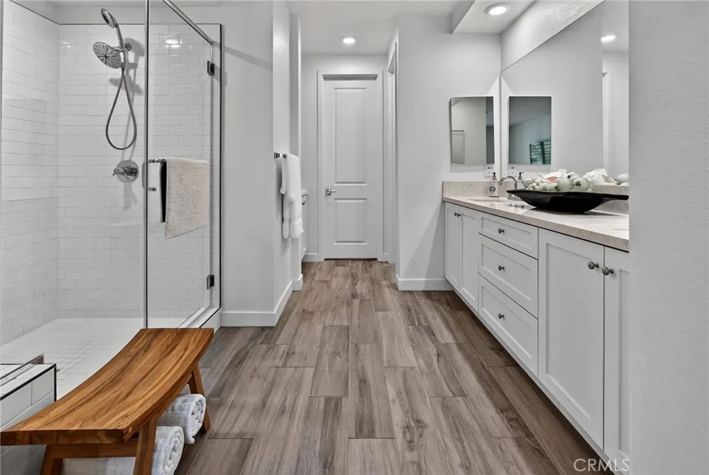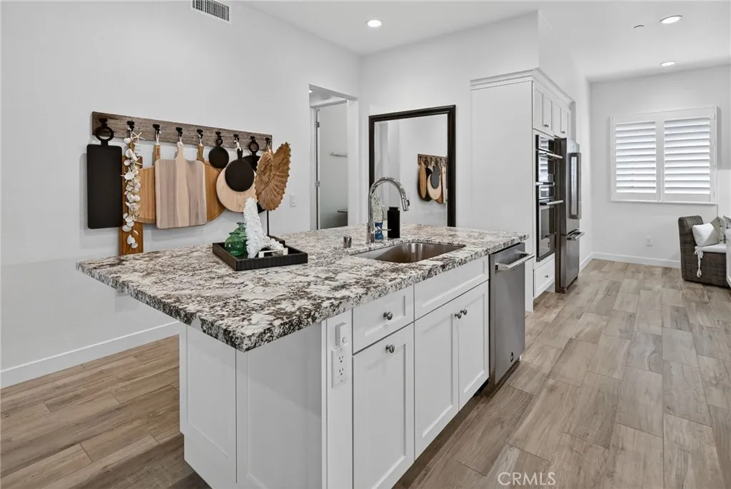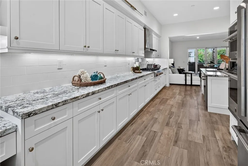 Welcome to this 2022 built luxury condo just steps from Doheny Beach and Dana Point Harbor ~ Choice location in "South Cove" development featuring 3 Bedrooms / 4 Baths / 4-CAR GARAGE / 2157 sq. ft. / Townhouse style with nobody above or below ~ This meticulously maintained home boast a main level open concept floor plan with great room "La Cantina" doors opening to a spacious covered deck overlooking beautiful palm trees for seamless entertaining ~ Huge center island gourmet kitchen with every imaginable amenity featuring a center island with sit down bar / Unique leather look granite counters / Jenn-air appliances / Sit down desk niche / Extensive pull-out drawers--custom inserts--self close cabinetry ~ Wood look porcelain tile floors in all but 2 bedrooms and custom shutters throughout ~ Spacious upstairs primary suite with dual sinks--walk/in shower--walk/in closet with organizers ~ 2nd bedroom with private bath--dual sinks--walk/in shower--walk/in closet w/organizers ~ Main living level features a 3rd bedroom/office/guest room with adjacent full bath and W/I closet ~ Rare direct access 4-CAR GARAGE (54 feet deep on one side) featuring epoxy floors and EV charging outlet ~ Generous ground floor entry with full bath that includes a walk-in beach shower ~ There is a circular staircase leading to a roof-top deck with peek ocean views made for sunsets-fireworks-relaxation ~ "Flow Tech" soft water system with instant hot water buttons in kitchen & baths ~ This incredible location is within minutes of great schools, shopping, restaurants, harbor, freeway access, and beautiful