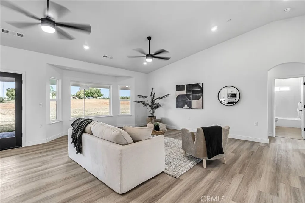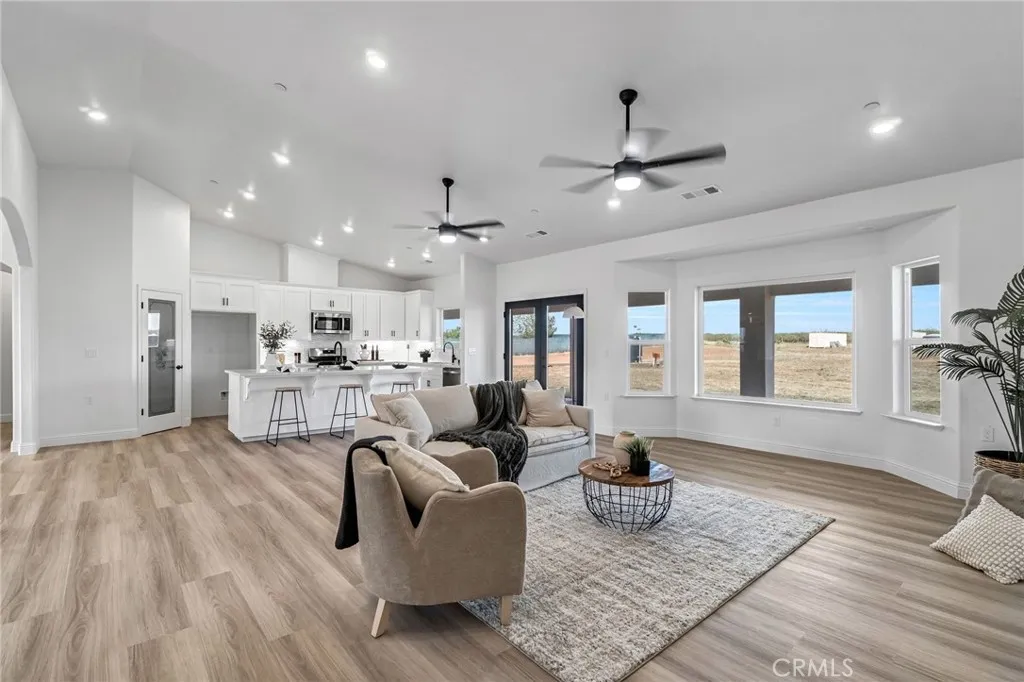 Welcome to 21035 Forest Glen Road in Madera, a well-maintained home offering approximately 2,343 square feet of living space with a spacious open floor plan designed for comfort and functionality. The living room features vaulted ceilings and an open layout, creating a bright and expansive central living space. The kitchen is built for both everyday use and entertaining, featuring stone countertops, shaker-style cabinetry, a tile backsplash, a large center island, and bar seating that connects to the main living areas. The home includes multiple bedrooms, including a primary suite with a tray ceiling and a private ensuite bathroom, complete with a double vanity and tiled walk-in shower. Additional features include a dedicated laundry room and a large walk-in closet, providing practical storage and convenience. Step outside to an inviting patio area, offering space to enjoy the surrounding setting and outdoor use options. If youve been searching for a Madera home with an open floor plan, upgraded kitchen, and spacious layout, this property is one to see in person. Call today to schedule your private showing.