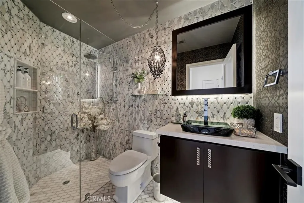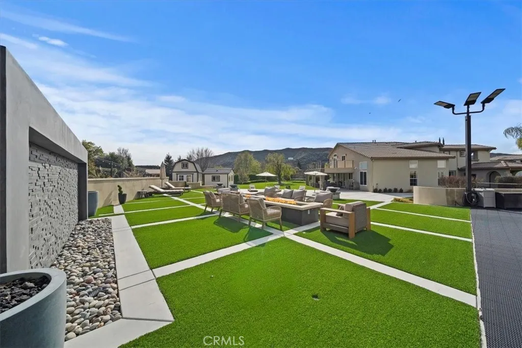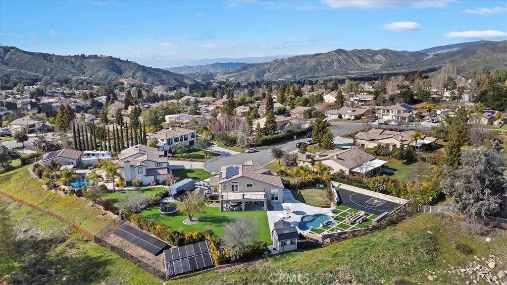 Welcome to your resort-like dream home, nestled in the highly sought-after Hidden Meadows Estates. Experience luxury outdoor living and refined indoor and outdoor comfort on an expansive fully landscaped lot with breathtaking mountain views. Imagine your own private resort-style backyard with newly refreshed pool and spa, lush greenery, ambient landscape lighting, expansive turf grass area, perfect for entertaining, play, or relaxation. Sit poolside on the large pool deck, unwind around the fire pit, or take in the calming sounds of the custom water wall feature. For sports enthusiast, the property boasts a private basketball court and a putting green complete with white sand bunkers. Take in the incredible mountain views from the stunning balcony/patio, thoughtfully designed for year-round comfort with electric bug blinds, overhead fans, and gas heating, perfect for both quiet evenings and hosting unforgettable gatherings. Additional outdoor features include RV parking with hookups behind a secure electric gate, as well as a private front courtyard enclosed by a custom steel gate for added charm and privacy. Inside, this 5-bedroom, 4-bathroom home has been completely remodeled and upgraded throughout, showcasing modern finishes and exceptional attention to detail. The flexible downstairs bedroom, currently used as an office, is ideal for guests or remote work. The home also features an indoor laundry room and a fully finished four-car garage with ample storage. Smart home automation enhances convenience and efficiency, while the paid solar system provides long-term energy