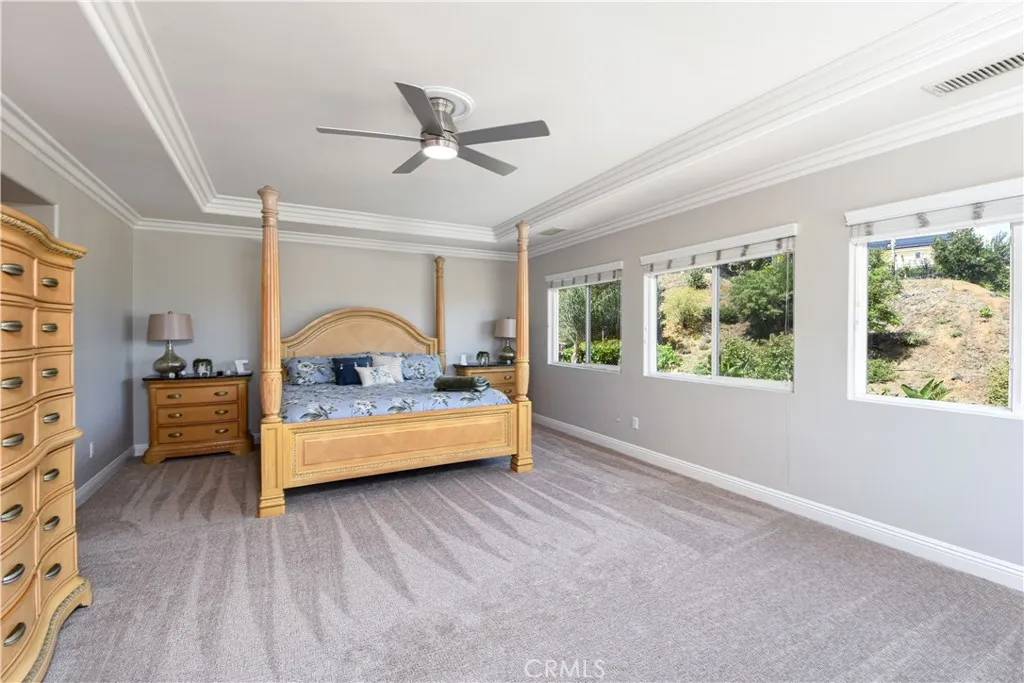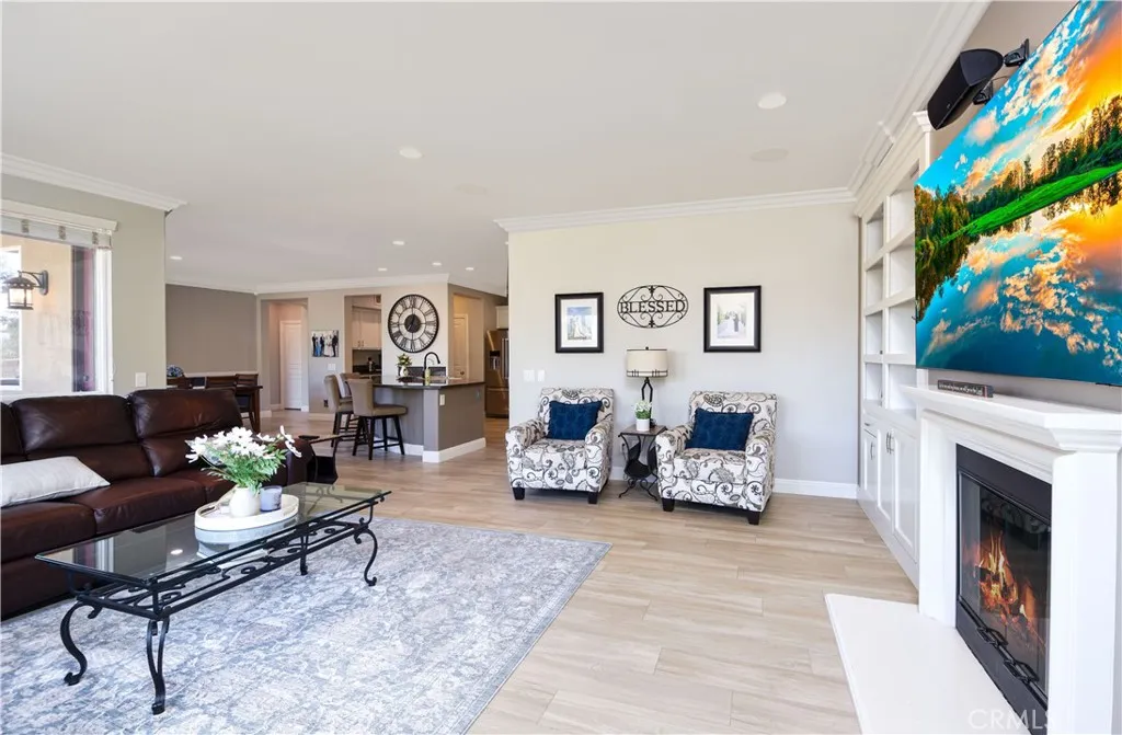 Set on a private corner lot within the prestigious Montecito Ranch community, this beautifully upgraded residence captures the essence of Southern California living with space, style, and sweeping mountain views. Spanning 3,629 sq ft, the home features 4 bedrooms, 4 bathrooms, and a versatile loft, with only one neighboring property enhancing its sense of privacy. Designed for both comfort and entertaining, the interior showcases wood-look tile flooring, crown molding, a chefs kitchen with soft-close cabinetry, pull-out shelving, and reverse osmosis water filtration, along with extensive smart home features throughout. The backyard is a true retreat with a resort-style rock pool and spa with slide, built-in BBQ/bar, fire pit, outdoor speakers, and multiple spaces to relax and entertain. Enjoy beautiful mountain views from the private balcony off the primary suite, creating the perfect place to unwind. Additional highlights include a 4-car garage, solar with backup battery, newer AC, whole house fan, artificial turf, and included appliances. Ideally located near the I-15 corridor with planned express lane expansions, and just minutes from Glen Ivy Hot Springs and The Shops at Dos Lagos, offering a perfect balance of relaxation, dining, shopping, and convenient access throughout the region. A rare opportunity combining privacy, upgrades, and lifestyle in one of Coronas most desirable communities.