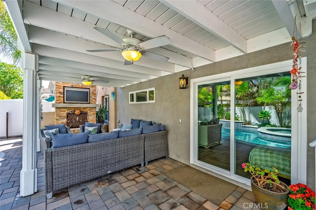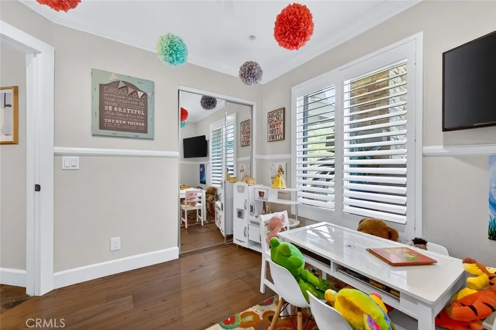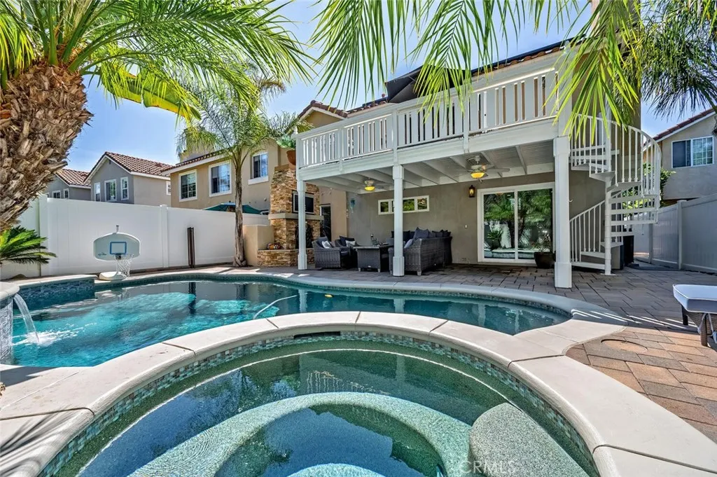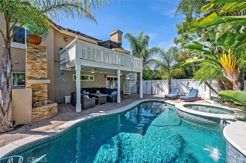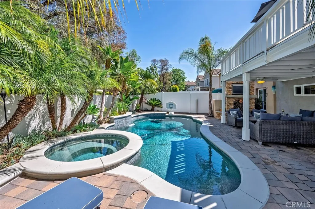 Tucked into one of the most desirable pockets of Rancho Santa Margarita, just steps from award-winning schools, this beautifully upgraded single-family home offers the kind of lifestyle buyers are searching for. The split-level design creates a unique and functional layout, with the main living space elevated to capture light, volume, and flow. Upstairs, youre greeted by soaring vaulted ceilings with real custom shiplap detail complete with crown molding, giving the space a warm, modern character that immediately stands out. The kitchen has been upgraded with Taj Mahal quartzite countertops, newer cabinetry, and updated appliances, blending timeless design with everyday functionality. It opens seamlessly to the living area, making it perfect for both quiet nights at home and hosting friends. But where this home really shines is the indoor-outdoor experience. Just off the living room, bi-fold accordion doors completely open to a 10x20 deck with a gas hookup, creating a true extension of the living space and overlooking the backyard and pool below. Also on the upper level, youll find a meticulously upgraded laundry room and a spacious primary suite featuring a walk-in closet with custom organizers and a fully remodeled bathroom where no detail was overlooked. Downstairs offers even more flexibility, with an additional living space that can easily function as a family room, home office, or optional 4th bedroom, along with two secondary bedrooms with upgraded flooring. Every inch of the home has been carefully improved, including new windows, shaker-style interior doors, engine