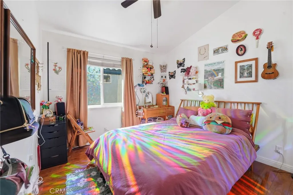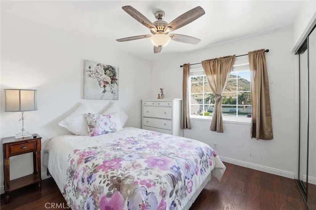 Welcome to the highly sought after Southridge Community in Fontana, where pride of ownership, convenience, and space come together with no HOA and close proximity to schools, parks, and shopping. This spacious 5 bedroom, 3.5 bathroom two-story home offers a versatile layout that is perfect for a large or multigenerational family. Step inside to soaring vaulted ceilings in the formal living and dining areas, creating an open and inviting first impression. The main level features durable laminate plank flooring throughout and flows seamlessly into the kitchen and family room, ideal for everyday living and entertaining. The kitchen is equipped with granite countertops, stainless steel appliances, and ample cabinet space, all overlooking the backyard with a large covered patio, perfect for outdoor gatherings. You will also find a lemon tree adding a touch of charm to the backyard space. Downstairs includes a convenient half-bathroom for guests, direct access to the garage with epoxy flooring, and a private bedroom with its own ensuite bathroom, ideal for extended family or guests seeking added privacy. Upstairs features wood laminate flooring throughout, a generously sized primary suite with a beautifully remodeled bathroom, three additional bedrooms, a full hall bathroom, and a large storage closet providing extra functionality. Additional highlights include plantation shutters throughout and leased solar to help with energy efficiency. The exterior offers stamped concrete in both the front and backyard, adding to the home's curb appeal and low maintenance design. This is a ra