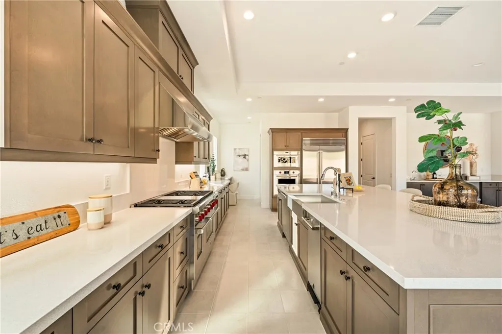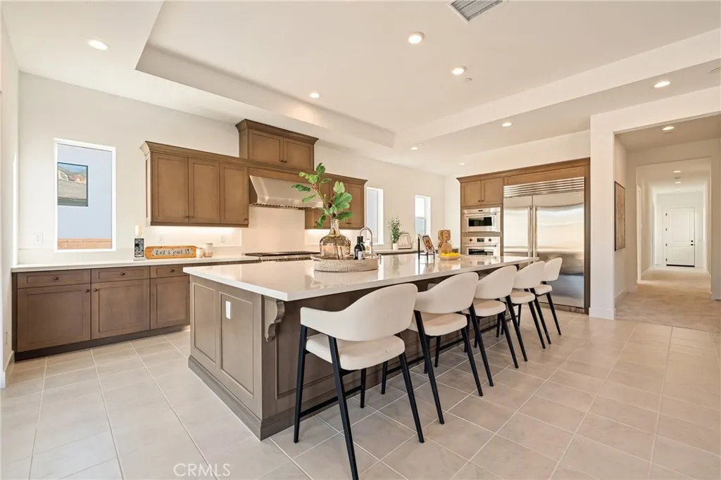 Experience refined single-story living in this beautifully upgraded Toll Brothers residence, located in one of Porter Ranchs most desirable communities. Positioned as one of the most competitively priced homes of the same model within the neighborhood, this property offers exceptional valueover $130,000 in thoughtfully selected upgrades. Designed with both comfort and elegance in mind, the home showcases a highly desirable, symmetrical layout with 4 bedrooms and 4.5 bathrooms. Upon entry, you are welcomed by a balanced dual-wing floor plan, offering privacy and functionality, with two bedrooms on each side and expansive open-concept living spaces at the center. The great room is enhanced by oversized multi-slide glass doors, creating seamless indoor-outdoor flow and allowing abundant natural light to fill the space. A statement fireplace, designer lighting, and a custom wet bar further elevate the homes entertainment appeal. The chefs kitchen is equipped with premium Sub-Zero refrigeration and Wolf appliances, complemented by upgraded finishes and thoughtful design details throughout. Additional enhancements include upgraded insulation, electrical and lighting packages, and refined interior selections that contribute to both comfort and efficiency. The spacious primary suite also features upgraded sliding doors, offering direct outdoor access and a tranquil, retreat-like atmosphere. The expansive backyard presents a rare opportunity, offering both immediate usability and future customization potential. With its generous, flat layout, the space is ideal for creating a person