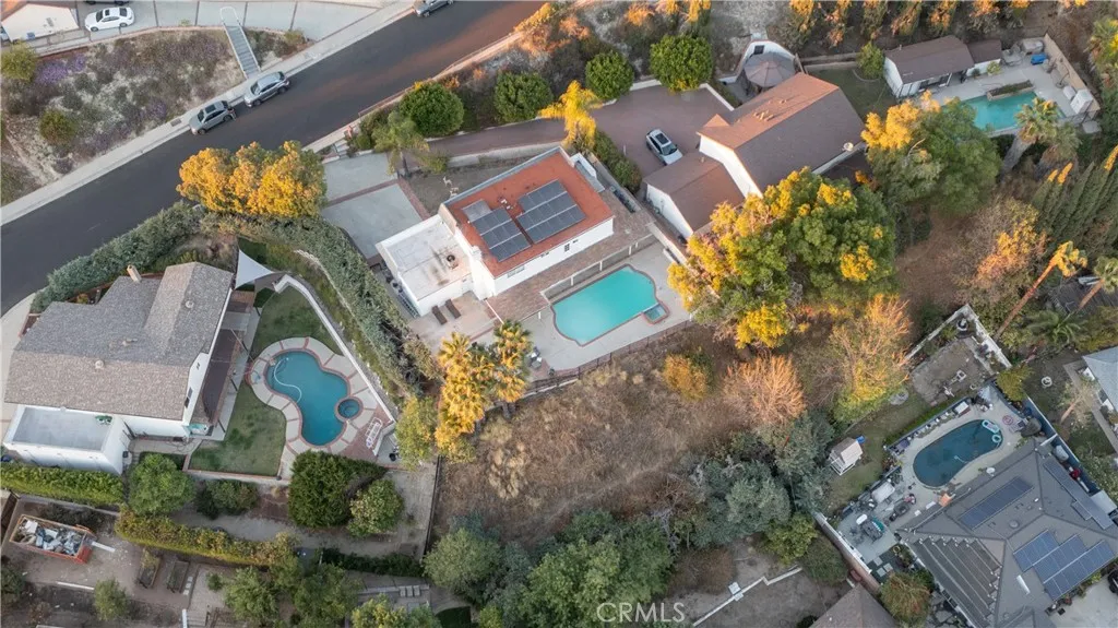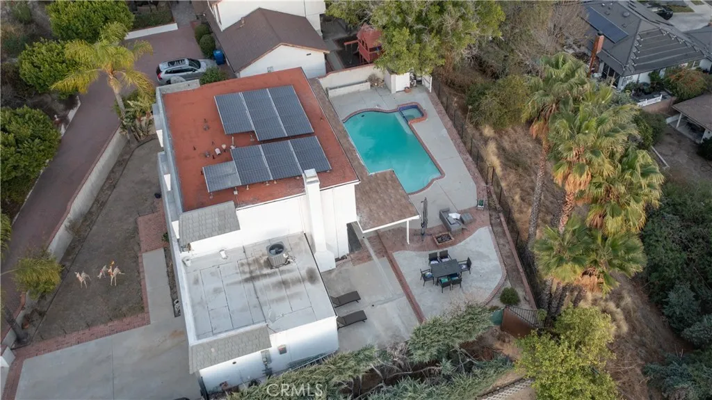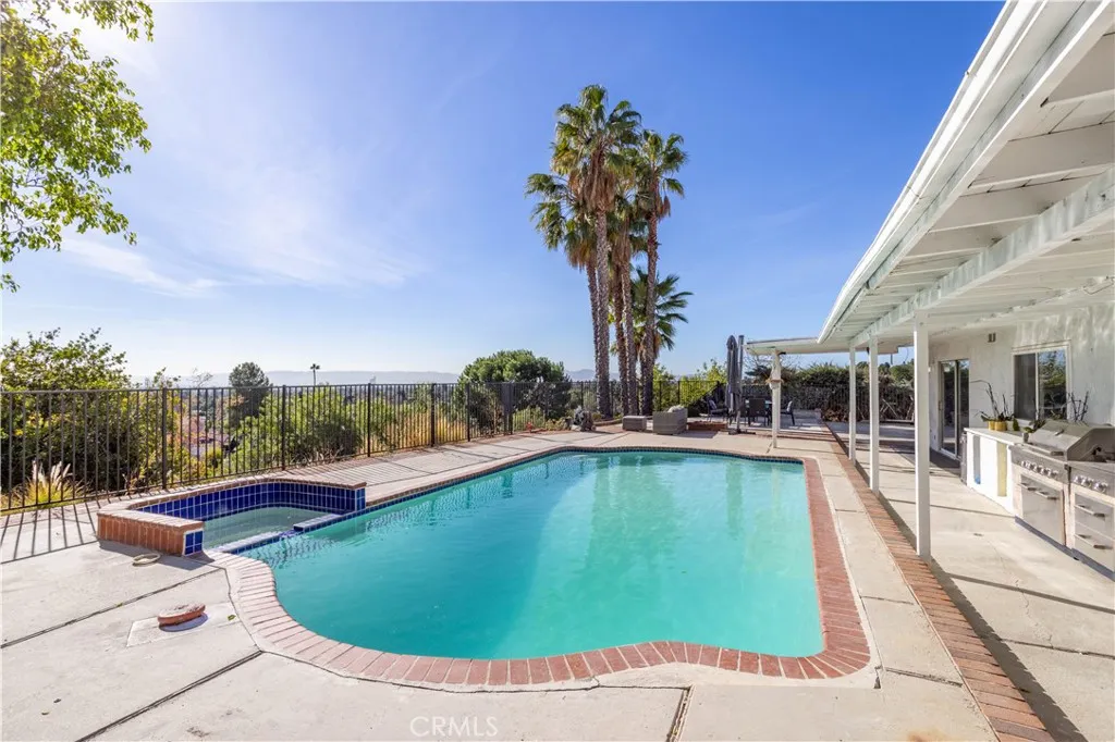 Now Featuring a Completely Remodeled Kitchen! This stunning Granada Hills home is located in a highly desirable North of Rinaldi neighborhood and offers unobstructed panoramic Valley views. A long private driveway lined with lush landscaping and brick-capped planters creates beautiful curb appeal and leads to a spacious 2,338 sq ft open-concept floor plan. Inside, the home is move-in ready and features plantation shutters along with a stylish blend of laminate and tile flooring throughout. The bright living room is filled with natural light from sliding glass doors and features a cozy fireplace with raised hearth plus a convenient entertainers wet bar, making the space perfect for both relaxing and hosting guests. The newly remodeled kitchen is designed for both function and style with abundant cabinetry, quartz countertops, a dual-basin stainless steel sink, gas cooktop with ventilation hood, built-in appliances, and easy access to the large adjacent dining area. This home offers 4 spacious bedrooms and 2.5 bathrooms, including a large primary suite with a walk-in closet and an upgraded bathroom featuring a mirrored vanity and a custom glass-enclosed tiled shower with seating, handheld fixture, and rain shower head. A convenient guest powder room is located on the main level. Additional highlights include central heating and air conditioning, energy-efficient dual-pane windows, and a large solar panel system designed to help reduce utility costs. The 10,988 sq ft private lot creates a true backyard retreat with incredible Valley views, a covered entertainers patio, multipl