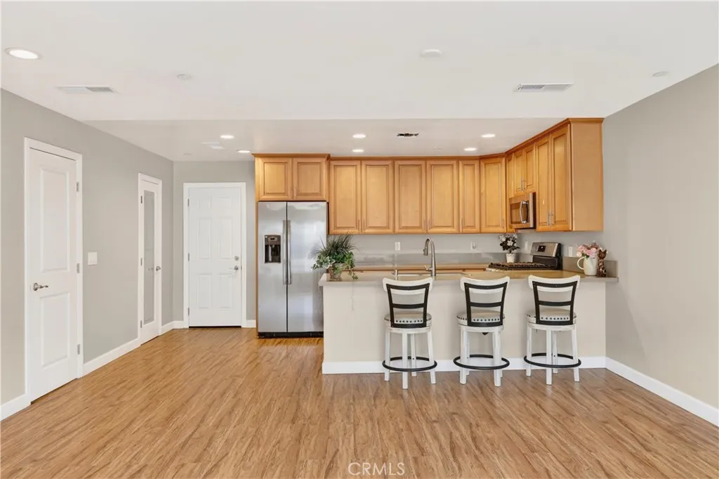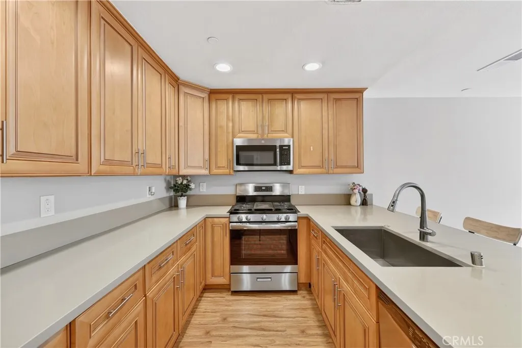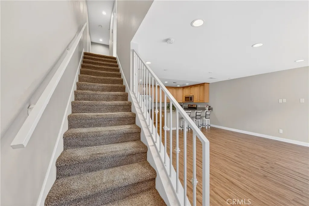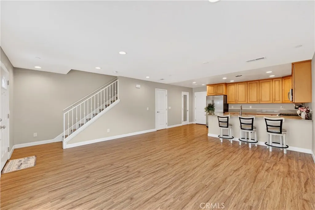 Welcome to this move-in ready condo located in a gated community in the city of Fontana. This home features 3 bedrooms and 2.5 bathrooms with an open-concept floor plan that provides comfortable living and easy flow for entertaining. The interior showcases fresh new paint throughout, creating a bright and welcoming feel. The kitchen includes stainless steel appliances, a walk-in pantry, and direct access to the attached two-car garage. The main level also offers a convenient half bathroom for guests. Upstairs, the primary suite features a private balcony, dual sinks, and a full en-suite bathroom. Two additional bedrooms and a separate laundry room complete the upper level. The gated community offers enjoyable outdoor amenities including a playground, park area, and designated spaces for barbecue gatherings. This property combines comfort, modern design, and a desirable location in Fontana with convenient access to local shopping, schools, and major freeways.