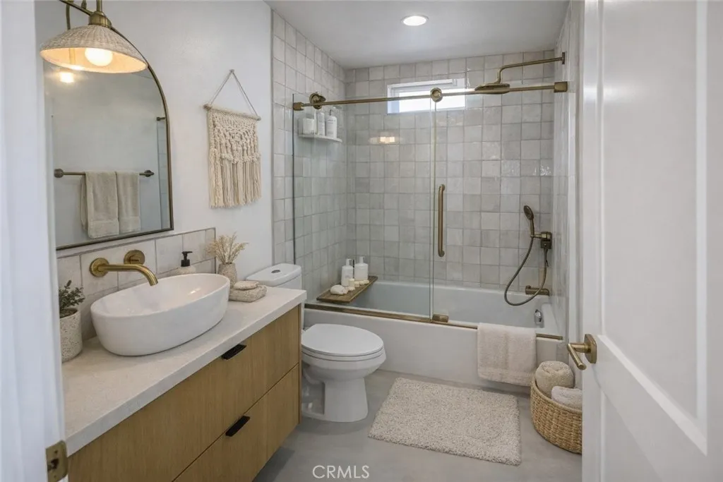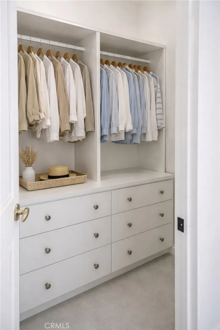 The AI generated staging is for "suggestions" on furniture and accessories. Beautifully redesigned and thoughtfully upgraded, this Newport Beach home embodies effortless coastal living. Inside, crisp white walls, micro-concrete floors, and custom warm wood cabinetry create a clean, inviting atmosphere filled with natural light from the skylight above. The open-concept layout flows seamlessly through the living and dining spaces, complemented by a top-tier Thermador refrigerator and dishwasher, along with a Z-Line range and oven. Dutch doors open to welcome the refreshing ocean breezeperfect for both relaxed gatherings and formal entertaining. With two spacious secondary bedrooms, youll have flexibility to host guests or create a dedicated home office. One of the bedrooms is currently a "walk-in" closet. Outdoors, enjoy complete fencing surrounding the property. Low-maintenance turf and modern concrete stepping stones help keep the landscape healthy year-round. Community amenities include two private pools, a spa, a meeting room, and exclusive access to a private beach.