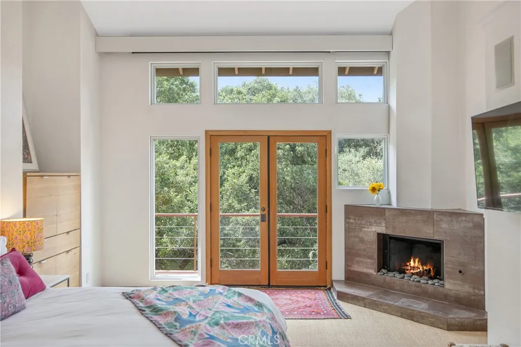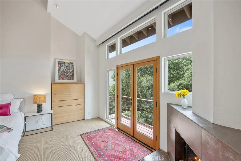 Tucked away South of the Boulevard, this remarkable architectural residence offers a rare blend of privacy, thoughtful design, and natural beauty. Positioned at the end of a quiet cul-de-sac that opens directly onto protected conservation land, the home feels like a peaceful escape while still being just minutes from the energy of the city. A gated entry welcomes you into a tranquil, Zen-inspired setting wrapped in a stunning Corten steel fence, with mature trees surrounding the home to ensure exceptional privacy. Inside, the main living space impresses with its dramatic scale and warmth. A soaring two-story vaulted ceiling enhances openness, complemented by a wood/gas-burning fireplace that anchors the room. High-set windows fill the space with natural light and offer peaceful views of the courtyard that brings the outdoor experience inside, creating a seamless connection to nature. The kitchen is designed for both beauty and performance, featuring stone countertops and high-end stainless-steel Viking and Kitchen-Aid appliances. The adjoining dining and sitting area open to a majestic private deck surrounded by lush greenery. This inviting outdoor space is perfect for relaxing mornings or quiet evenings, where you can enjoy coffee immersed in nature, and listen to the gentle sounds of birds and squirrels. The primary suite offers a luxurious retreat, generously sized and complete with a vaulted ceiling, its own wood/gas-burning fireplace, balcony, and a large walk-in closet. The upgraded en-suite bathroom delivers a spa-like experience with a deep soaking tub, and an expan