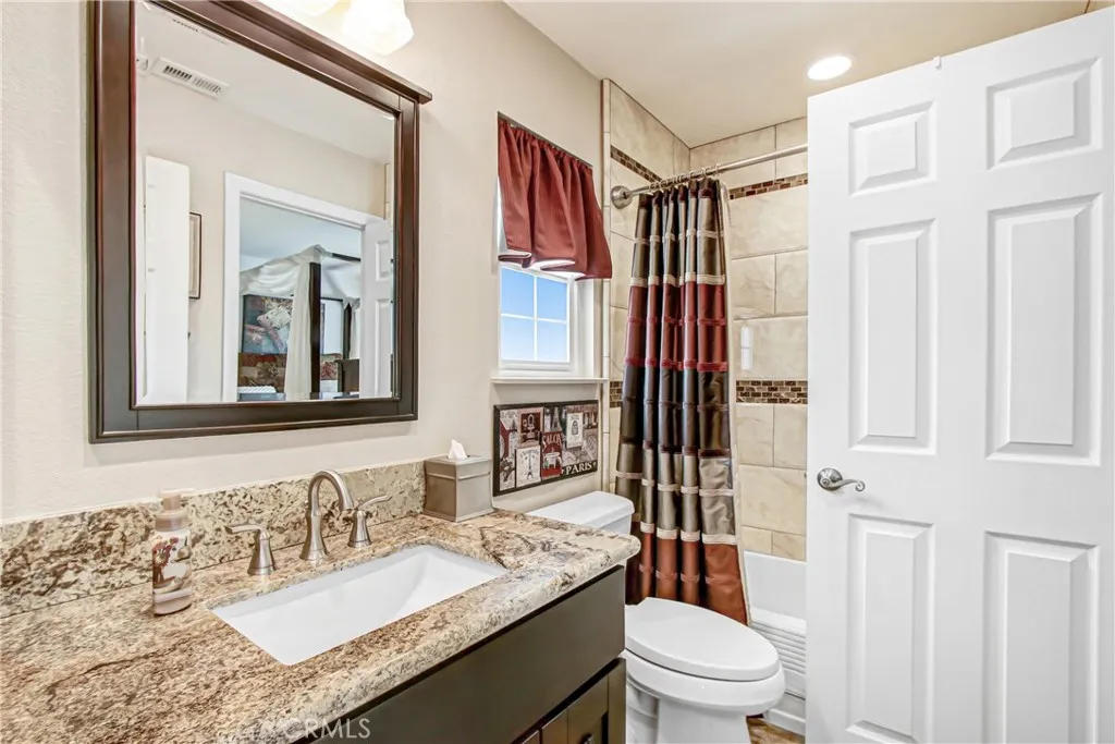 Welcome to this beautifully maintained 3-bedroom, 2.5-bath home in the heart of Chino, offering comfort, functionality, and thoughtful upgrades throughout. Step inside to a bright and inviting living room featuring vaulted ceilings that create an open, airy feelperfect for both relaxing and entertaining. The updated kitchen is a standout, complete with granite countertops, recessed lighting, and a built-in wine fridge. Just off the kitchen, a formal dining room provides the perfect setting for hosting dinners and special gatherings, while the adjacent cozy den with a gas fireplace offers a warm, inviting space to unwind. Upstairs, the spacious primary suite offers a private retreat with high ceilings, double-door entry, a walk-in closet, and an en-suite bath featuring elegant marble countertops. The additional bedrooms are well-sized, including a third bedroom with its own walk-in closet, and are connected by a convenient Jack-and-Jill bathroom. A hallway linen closet adds extra storage. This home also includes a fully enclosed sunroomcomplete with furnitureproviding additional versatile living space. Enjoy outdoor living with a welcoming front patio and newer aluminum patio covers in the backyard, ideal for gatherings or quiet evenings. Recent upgrades provide peace of mind, including newer exterior paint, a roof replaced within the last four years, and a rebuilt electrical panel with whole-house surge protection. Vinyl double-pane windows and sliding doors throughout enhance energy efficiency. Additional features include a custom shed for extra storage, great curb appeal,