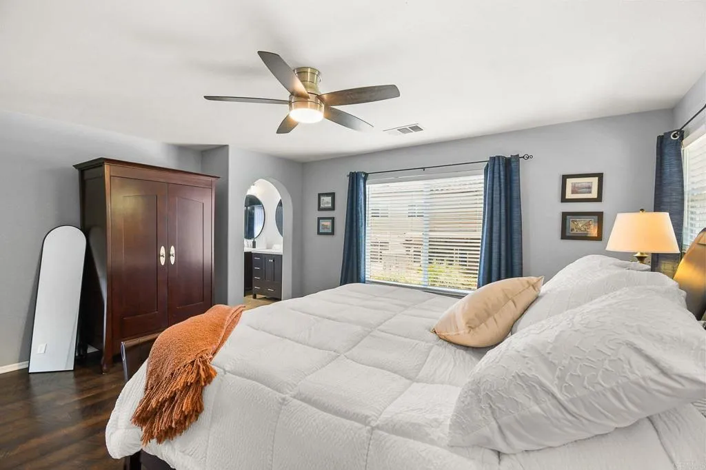 Highly sought-after Eastlake Trails North! Beautifully maintained and ideally situated on a prime cul-de-sac lot, this 5BR/3BA home offers a rare combination of privacy, space, and location. With no neighbors to one side or directly in front, this home enjoys an open feel and added privacy. Ideally located near schools, parks, and recreation centers, plus access to The Woods and Creekside Pool. The community also offers nearby walking and hiking trails, the 29-acre Montevalle Recreation Center, and convenient access to shopping, dining, and major freeways. The spacious floor plan features 1 bedroom and full bath downstairs, ideal for guests or multigenerational living, plus 4 additional bedrooms upstairs. The remodeled kitchen includes stainless steel appliances, a walk-in pantry, and opens to a large family room ideal for everyday living and entertaining. The upgraded primary bathroom offers a 2-person spa tub, creating a relaxing retreat. Enjoy a private, low-maintenance backyard with turf in both the front and backyard, brand new vinyl fencing, and plenty of space to relax or entertain. Additional highlights include 3-zoned A/C and epoxy garage floors. A wonderful opportunity in one of Eastlakes most desirable neighborhoods!