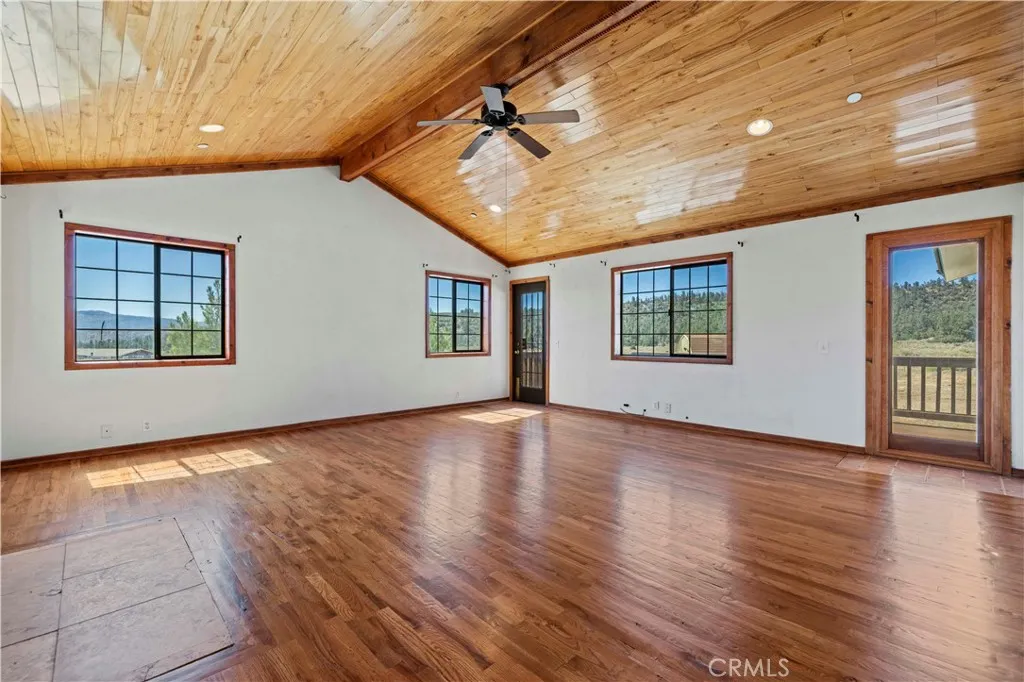 Nestled in the mountains and surrounded by natural beauty, this magnificent estate combines timeless craftsmanship with modern updates on over 5 acres bordering 600 square miles of National Forest. Recently refreshed with new exterior and interior paint and beautifully refinished hardwood floors, the single story custom home offers sweeping panoramic views and trails right outside your door. The residence features 5 bedrooms, 2.5 bathrooms, and nearly 3,600 square feet of thoughtfully designed living space. The expansive living room showcases vaulted ceilings with exposed beams, while the chefs kitchen is equipped with a walk in pantry, double oven, marble countertops, artistic backsplash, custom cabinetry, and a striking butcher block island. Radiant heated floors warm the kitchen and dining areas, and three fireplaces add inviting charm throughout the home. The primary suite is a private retreat with vaulted ceilings accented in exotic Asian birch, a cozy fireplace, and a spa inspired bath with a cast iron tub and oversized shower. Built for both beauty and resilience, the property includes a lifetime metal roof, full sprinkler system, dual propane tanks, boxed in eaves, complete fencing with an electric gate, and a backup generator powering the entire home and well pump. Equestrian facilities include corrals and a powered tack room, offering a ready made retreat for horse enthusiasts. Located just 45 minutes from Santa Clarita, this rare estate delivers the perfect blend of seclusion, modern updates, and timeless natural beauty.