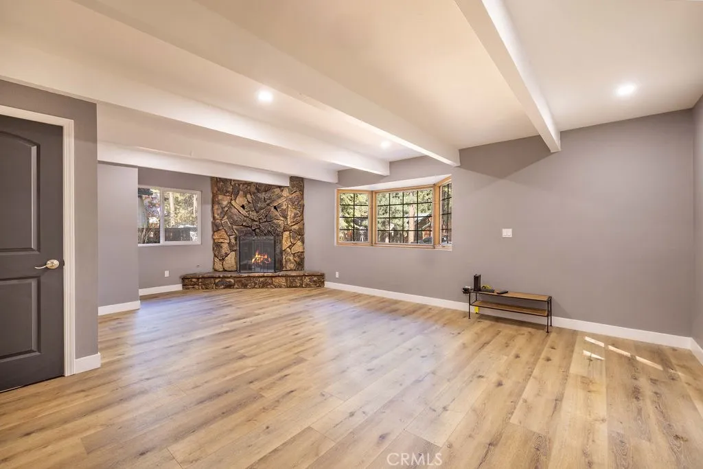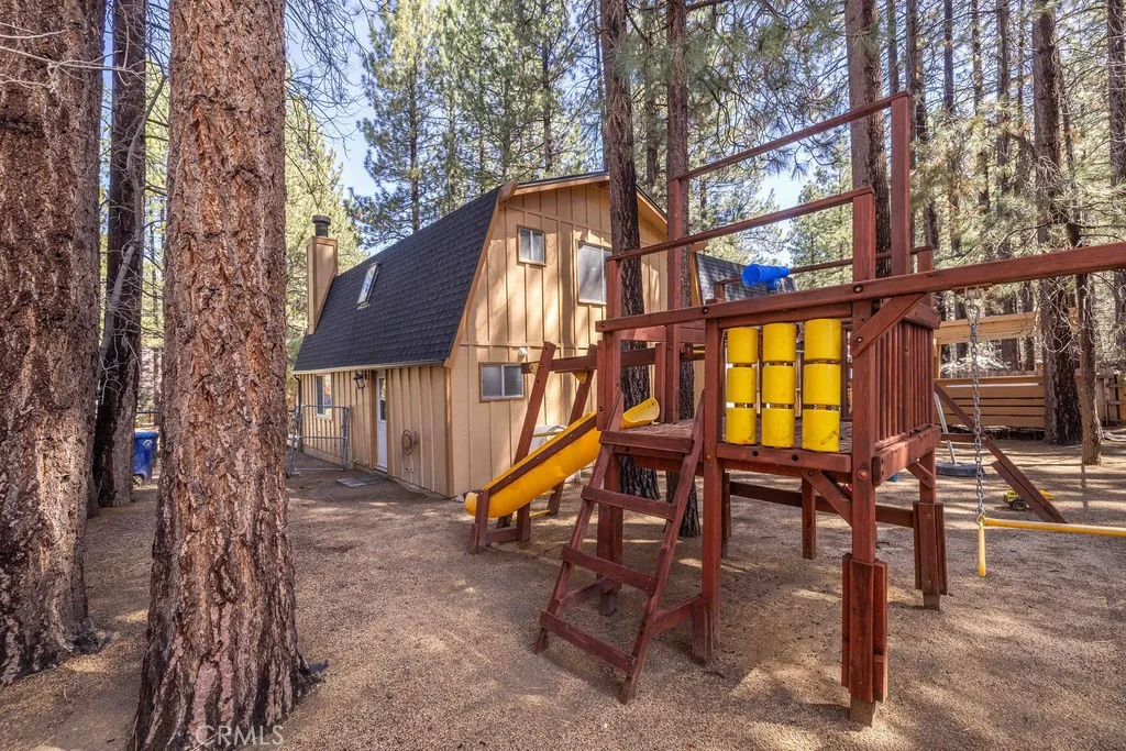 Walking distance to Snow Summit, this stunning custom gambrel has been beautifully remodeled inside and out, offering the perfect blend of mountain charm and modern comfort. Situated on a rare, flat triple lot, this property provides an incredible sense of space, usability, and versatilitysomething thats hard to come by in Big Bear. Featuring four spacious bedrooms and four bathrooms, this home offers over 1,900 square feet of well-designed living space, ideal for both full-time living and a high-performing mountain retreat. The open-concept layout allows the kitchen to seamlessly flow into the dining and living areas, creating a warm and inviting environment perfect for entertaining or relaxing after a day on the slopes. Step outside and enjoy multiple decks designed for gathering, dining, and soaking in the fresh mountain air. The fully fenced backyard is an entertainers dream, complete with a Jacuzzi for unwinding under the stars and a swingset for the kidsmaking it just as functional as it is enjoyable. With ample parking and a single-car attached garage, theres plenty of room for guests, toys, and all your mountain gear. Whether youre looking for a primary residence, vacation home, or investment opportunity, this turnkey property checks all the boxes with location, layout, and lifestyle.