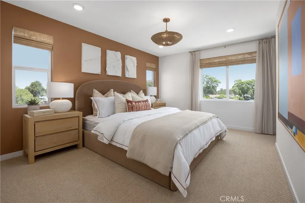 Tesoro Walk is a new gated community, located in the City of Downey, featuring 33 beautiful townhomes. On the first floor of our "Diamond" floor plan as you enter through the private patio, you'll find a full bedroom with full bath and your two-car side by side garage. The second floor is your main living level and features a spacious kitchen with large eat-in island, an open living room, and a flex space that can make for a formal dining area or home office. On the upper level you'll find a conveniently located side by side laundry room, your large primary suite with walk-in closet and a secondary bedroom with private en-suite bath. This home is fully complete and ready for a July Move-in. It also features upgraded flooring through as well as many designer selected upgrades. Pictures are of the model home and may not reflect the actual finishes