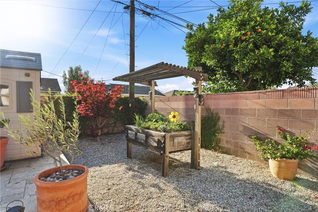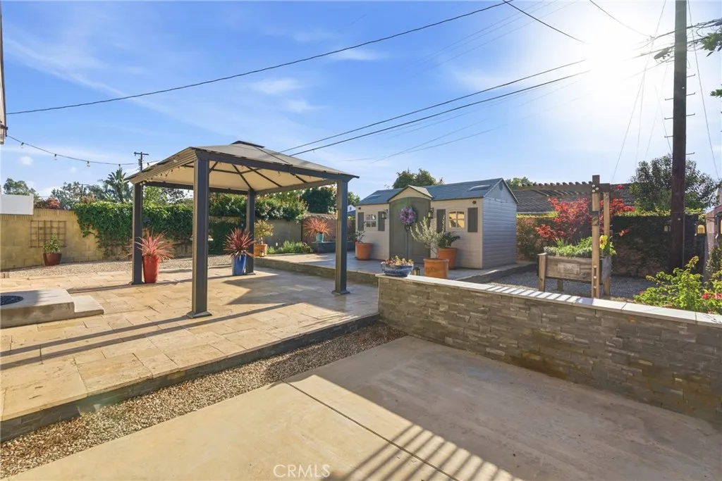 This is a great opportunity to own a 2-bedroom, 2-bathroom home in the highly desirable Lakewood Park neighborhood, a true standout in a community where two-bedroom, two-bathroom homes can be hard to find. Very well-maintained and move-in ready, this home combines timeless charm with upgrades throughout. Inside, a thoughtfully upgraded kitchen impresses with quartz countertops, a timeless marble subway backsplash, stainless steel appliances, and under- and above-cabinet lighting, which are all designed for both function and style. A dedicated laundry area with a washer and dryer sits conveniently adjacent to the kitchen. Both bathrooms have been updated: one features a classic marble floor and crown molding. The spacious living and dining rooms flow together seamlessly, are freshly painted and trimmed with crown molding, and they open directly onto the showstopper of this home: a sprawling approx 1,000 square-foot two-level travertine deck complete with a gazebo and storage shed. There is a separate concrete pad accented by a slate and soapstone wall for your future BBQ, smoker, or spa. This outdoor sanctuary nearly doubles your activity space and is ideal for entertaining or peaceful personal time. Major systems have all been addressed: tankless water heater and NuvoH20 water softener (cartridge system), central HVAC, dual-pane windows with no-show integrated screens, updated shingle roof, full PEX re-pipe, remote-controlled garage door, and automatic sprinklers in the front yard. As the home is situated just blocks from restaurant row, the mall, movie theaters, amenities,