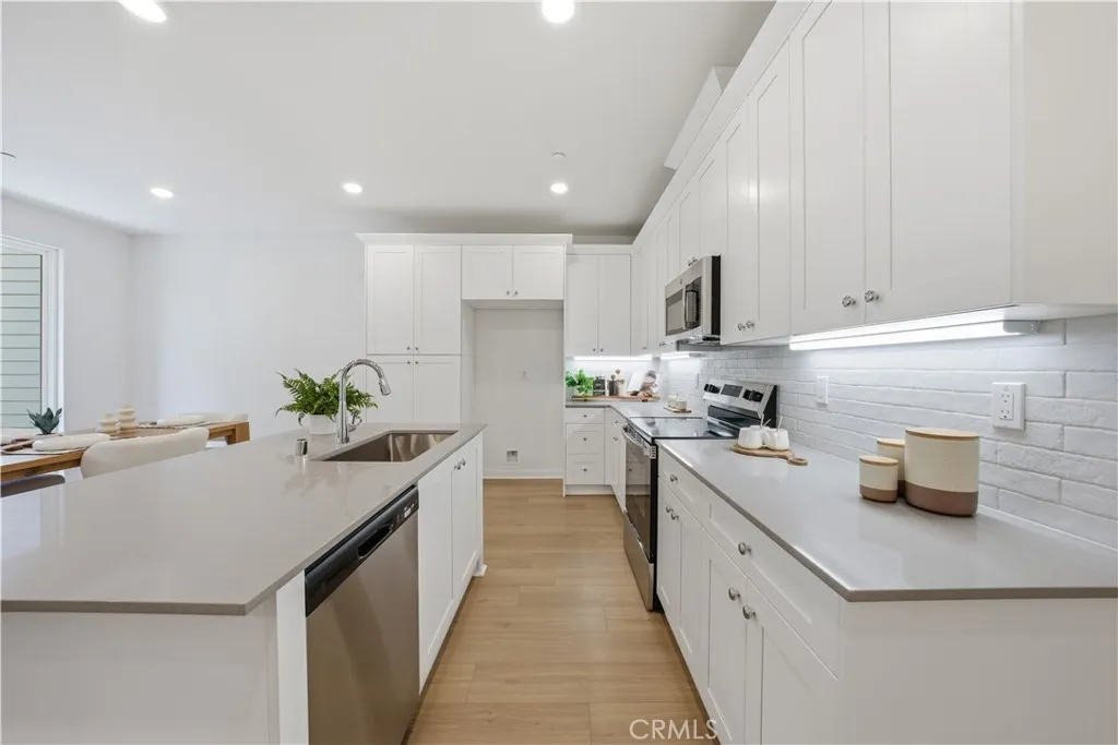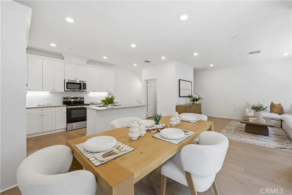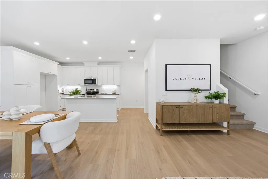 BRAND NEW TOWNHOME! Welcome to Valley Villas, a private, gated community offering 58 all-electric, tri-level townhomes designed for modern urban living. Conveniently located just minutes from the 405 freeway, this home provides quick access to everything you need, whether for work or play. This thoughtfully designed townhome features a large 2-car garage and a welcoming foyer on the ground level with beautiful LVP flooring that continues on the stairs leading you to the next level. The second floor is all about open, modern living that features more LVP flooring, upgraded quartz kitchen countertops with a full backsplash, undercabinet lighting, 9-foot ceilings, a bright dining room, and sliding doors that lead to a balcony, perfect for enjoying fresh air and natural light. A powder room on this level adds extra convenience for guests. On the top floor, you'll find the primary bedroom suite, complete with a walk-in closet. The secondary bedroom also includes en-suite bathroom, offering privacy and comfort. The laundry area is conveniently located on this floor as well, making daily tasks a breeze. Come see this home right away to take advantage of our large INCENTIVES that will make this home even more affordable! "Photos are for illustrative purposes only and may not represent the actual unit/home. Call our Valley Villas Sales Office at 818-920-8950 for more detailed information.