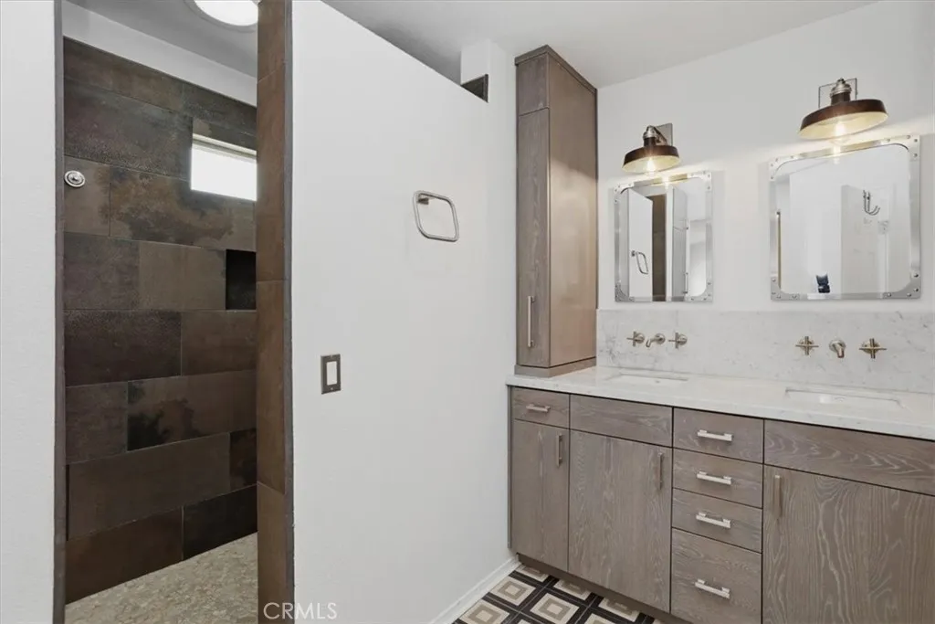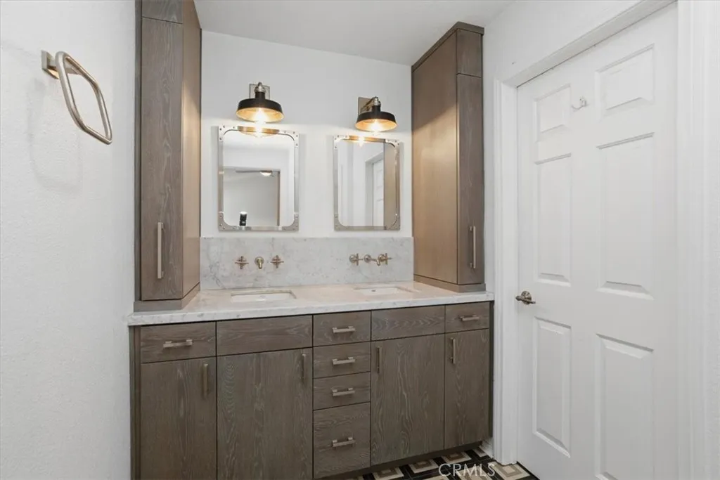 This stunning 4-bedroom, 2.5-bath home offers approximately 2,470 square feet and sits on a quiet cul-de-sac with beautiful curb appeal. Step into this impeccably clean and upgraded home through a welcoming entry. Inside, high ceilings create an open feel, complemented by gorgeous wood and tile flooring throughout (no carpet), plantation shutters, ceiling fans, and a cozy fireplace in the family room. The kitchen features a central island, built-in shelving, a 6-burner GE Cafe stainless steel stove with double ovens, a KitchenAid dishwasher, and a large walk-in pantry, offering plenty of space for everyday living and entertaining. Additional upgrades include tankless water heater, whole house water softener, newer HVAC system, a thermostatically controlled attic ventilation fan and high-end Toto heated toilets throughout. The primary suite offers a spacious setting with doors leading to a large Trex deck with great views. The primary bathroom has been completely remodeled and showcases premium finishes, including Hansgrohe and Restoration Hardware fixtures, Walker Zanger tile, and Hinkley lighting, marbel countertops along with custom cabinetry featuring pull-out shelving and soft-close drawers. This spacious bathroom also includes a large walk-in closet with an Elfa organization system.. Most of the interior has just been repainted, offering a fresh & clean canvas for new owners. The exterior is enhanced by a welcoming double door entry and a low-maintenance front and backyard with extensive hardscape. The backyard features artificial turf, garden wall planters, and a stor