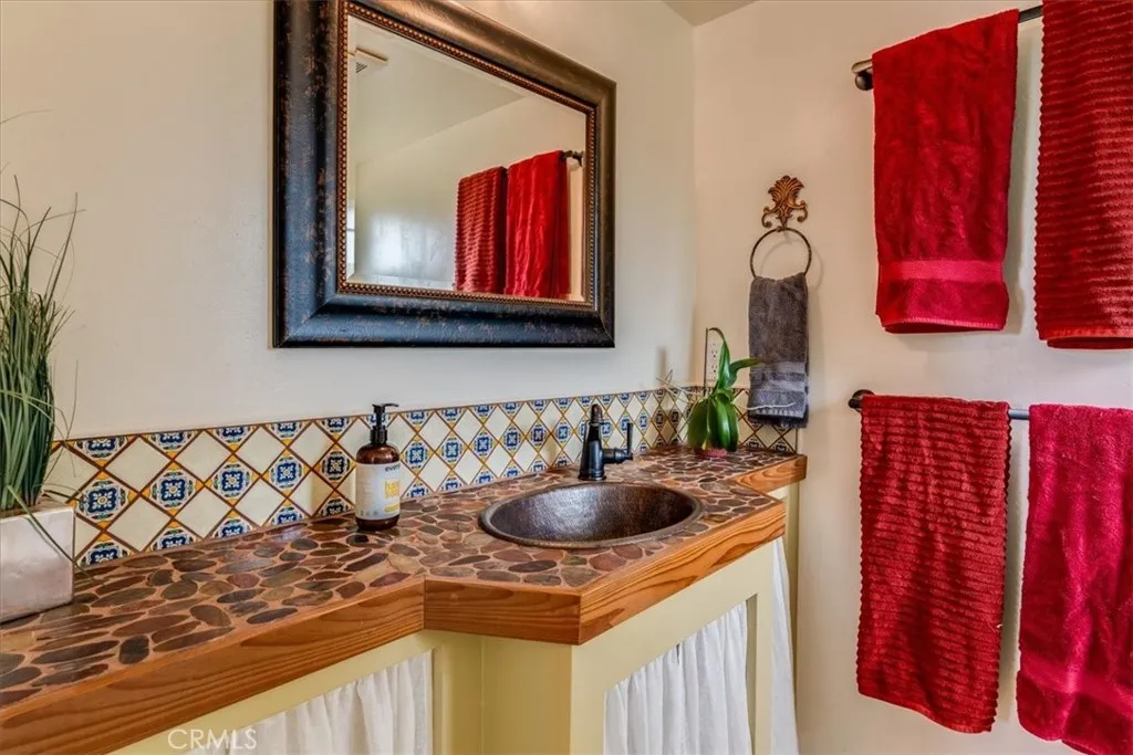 This Absolutely Charming, single level, Happy Hill home is full of desirable features. First and foremost, it is a single level home with an ocean view from both the interior and the front garden! Secondly, it has a vacation rental license plus there is a main house and a guest cottage. The main house has an open floor plan with a 31,000 BTU gas free standing fireplace in one corner of the living area, and an ocean view in the other. A charming, tiled kitchen has tile backsplashes, stained glass front upper cabinets, and both tile and butcher block counters. A garden window with a peek of ocean view is visible right from the kitchen sink. The dining nook connects the kitchen and living room. Extra storage is found in the large pantry at the end of the hall. There are three bedrooms, a bathroom and a half, and interior laundry room. One of the bedrooms has a sliding glass door to the patio and gardens, another has an exterior door to the side yard. Charming tile is found throughout the home. One bathroom has a solar tube for extra sunlight, there is a tankless hot water heater, and the home has Solar for zero or next to nothing electricity bills. The exterior of the property has been lovingly curated. There are cement patios and meandering brick paths between the well-maintained gardens. There are many places to sit and enjoy the birds, a glass of wine, or a cup of coffee in the morning. There is even an outdoor bathtub! The guest cottage has a gas fireplace, tiled bathroom, and large guest kitchen with a door to the back patio. There is also a heat pump mini split. This inc