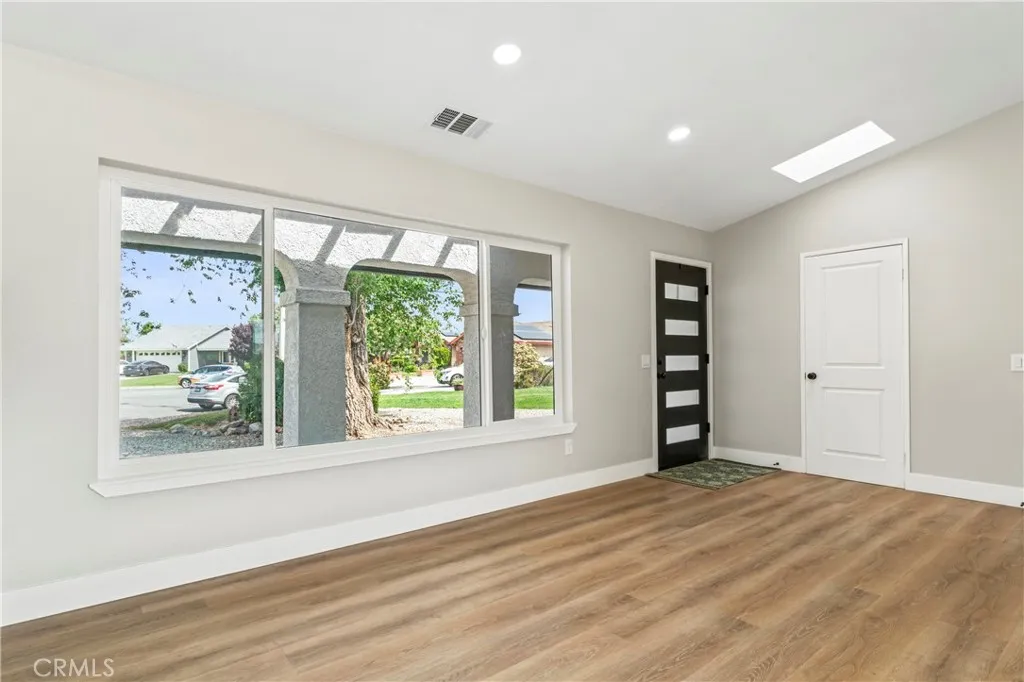 Welcome Home! This is the Home you have been waiting for, with 3 bedrooms and two Bathrooms. Come to see it and you will fall in love with this home and you could be the Lucky Buyers!! This Home has recently been upgraded with new waterproof vinyl floor, New Double Panel windows, New interior and exterior paint, New ceiling fans in all the bedrooms. Newly remodeled Baths with walking shower in the master bath, new vanity, new plumbing fixtures. New tile splashback throught out the bath tub. The kitchen is the focal point of the Home with white new cabinets and white tile splashback for easy cleaning. As you enter the home you will see the family room with skylight on the ceiling that gives lots of Natural light. The beautiful fireplace between the dining room and the Family Room. The eating area is open to the kitchen with additional seatting area in the kitchen Peninsula or breakfast bar. The garage is next to the dining room with new insulation on the walls and new drywall with recess light for your family gatherings on those cold winters nights. There is direct access to the 2 cars garage with remote control. The inviting front porch with its new concrete slab and the Rock Landscaping is the finishing touch to this Home. The home is sitted on a large Premium lot almost 1/2 acre of Land with Possible RV gate, Room to roam or to build a ADU, Worshop or RV garage. The House is located in a small street, very quiet from the cars noise but at the same time very close to everything, schools, churchs, Mall and the highway or Frwy. This is the home you have been waiting for, com