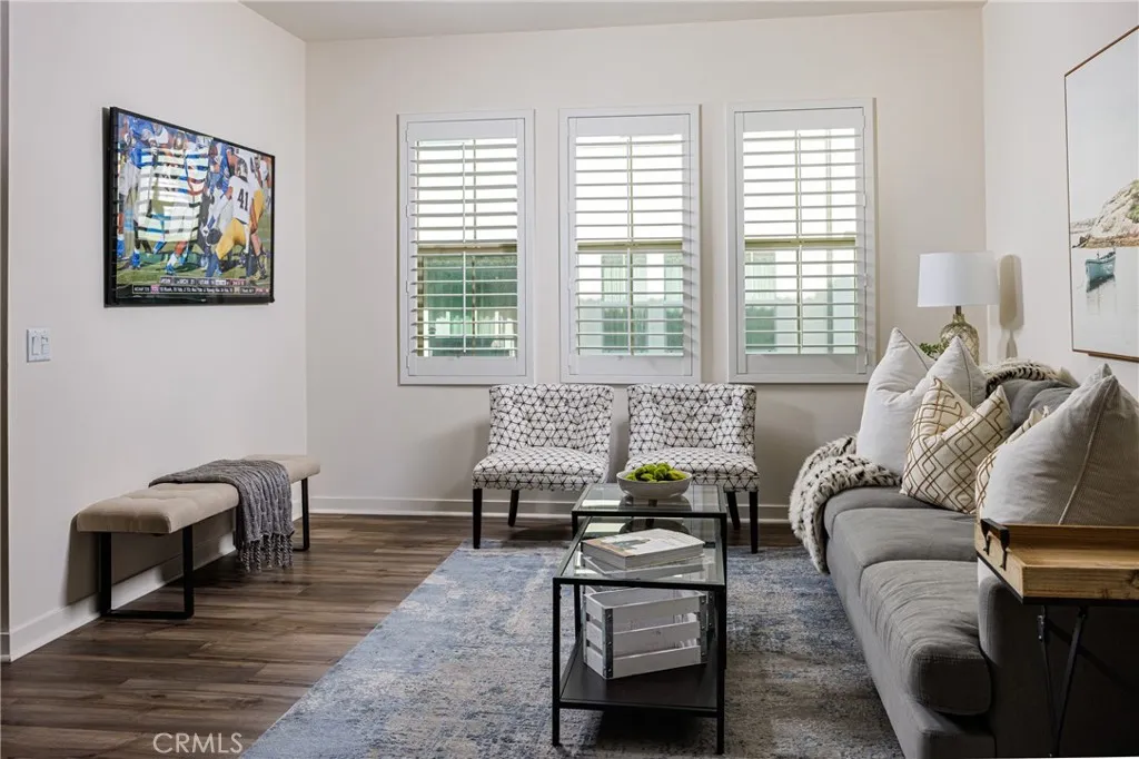 Welcome to this beautifully upgraded 2 bedroom, 2.5 bathroom townhome in the highly desirable gated community of Iron Ridge. This home offers modern upgrades, a spacious two-car garage, and an ideal layout designed for comfort and style. Step inside to luxury vinyl plank flooring throughout and a bright, open living space. The cozy family room is filled with natural light from multiple windows, creating a warm and inviting atmosphere. The chefs kitchen features shaker-style cabinets, quartz countertops, a custom backsplash, stainless steel GE appliances, and a large kitchen islandperfect for entertaining. Upstairs, both bedrooms provide comfort and privacy. The spacious primary suite boasts a large walk-in closet and an elegant ensuite bathroom with quartz countertops, a double vanity, and an oversized shower creating a spa like experience. The secondary bathroom is beautifully finished with quartz countertops, stylish upgraded fixtures, and a tub/shower combination. For added comfort, this home includes a QuietCool whole house fan and an energy-efficient tankless water heater. Enjoy resort-style living with exclusive HOA amenities, including a clubhouse, swimming pool, spa, parks, tot lots, tennis courts, barbecue areas, and picnic spots. Conveniently located near award-winning schools, Foothill Town Center, and Whiting Ranch Wilderness Park. Easy access to freeways and toll roads. Low property taxes and no Mello Roos make this an exceptional opportunity!