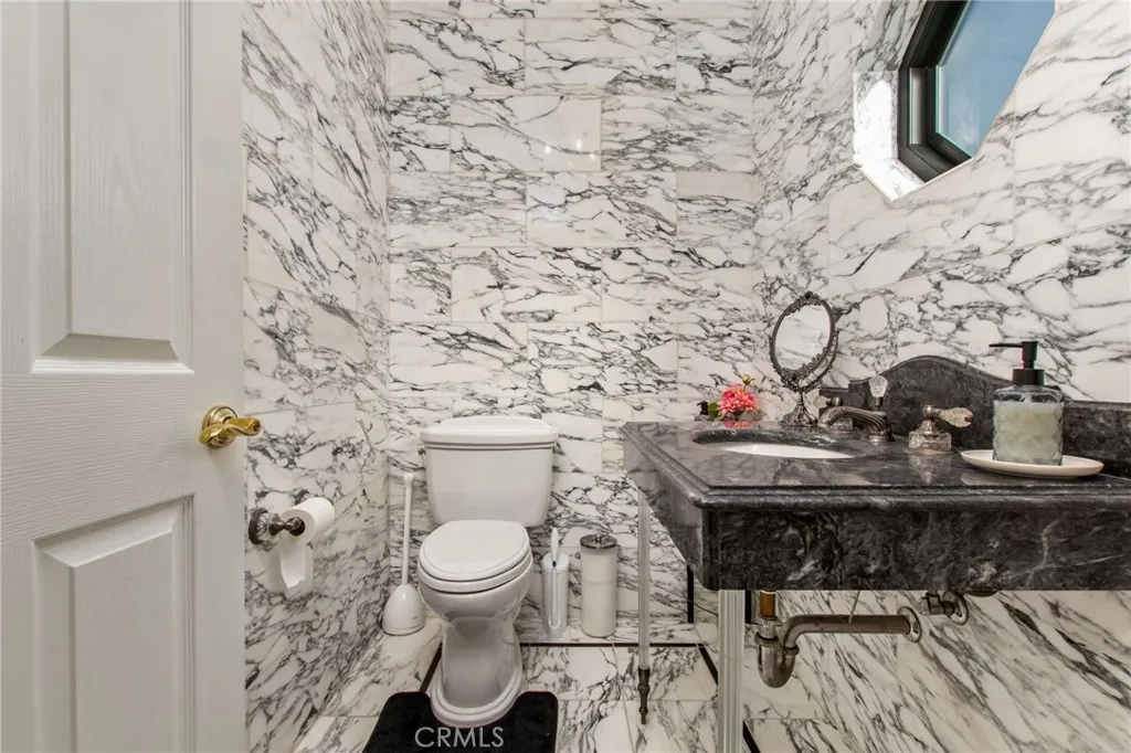 Perched at the farthest point along the hillside above the renowned San Luis Rey Downs Racetrack in the gated community of Lake Vista Estates, this exceptional residence captures sweeping panoramic views of the San Luis Rey Valley toward distant mountains. The setting evokes the beauty of a Tuscan countrysidewhere mornings begin with sunrise coffee on the terrace and you can watch the horses train and trot along the track below. Thoughtfully designed to maximize both views and livability, the home offers a flexible floor plan that lives comfortably as a 4-bedroom homeeach with its own ensuite bathplus a dedicated office privately positioned in a charming turret with elevated valley views. A grand Mediterranean-style entry introduces the homes architectural concept of sequential framing, guiding the eye through elegant openings from the formal dining room to the living spaces and onward to surrounding vistas. The bespoke primary suite serves as a luxurious retreat featuring an imported Italian marble fireplace, French doors opening directly to the pool terrace, dual walk-in closets, and a spa-inspired bath with split vanity sinks, heated floors, a multi-jet soaking tub, and steam shower. An oversized laundry room with abundant cabinetry provides excellent storage. Refined craftsmanship is showcased throughout with marble and hardwood flooring, exposed beams, Venetian plaster walls, and distinctive turret architecture with soaring dome-vaulted ceilings. The chefs kitchen features a generous breakfast nook, oversized marble-topped island with a new Miele induction range, Sub-Z