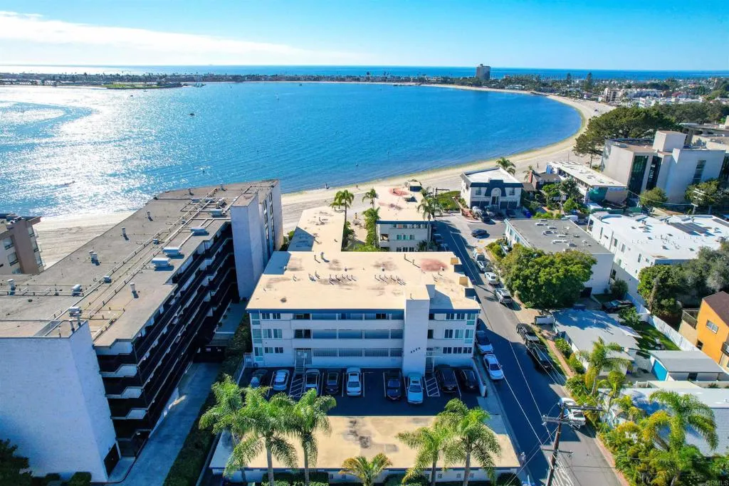 Welcome to Riviera Shores on Sail Bay, where waterfront tranquility meets the best of Pacific Beach living. This rare ground-floor 3BR/2BA condo is just steps from the sand and offers the ease of single-level living with no interior stairs. Bright corner windows frame beautiful bay views from the living and dining areas, while the spacious layout includes an updated kitchen, new LVP flooring, dual-pane windows and sliders, a generous primary suite, and two tastefully remodeled bathrooms with walk-in showers. The oversized covered patio creates seamless indoor-outdoor living and a front-row seat to the Sail Bay lifestyle. Residents enjoy a sparkling community pool, covered parking, in-unit laundry, and direct access to the scenic boardwalk stretching around the bay toward Crown Point and beyond. A rare chance to own a spacious bayfront home in one of Pacific Beachs most desirable settings.