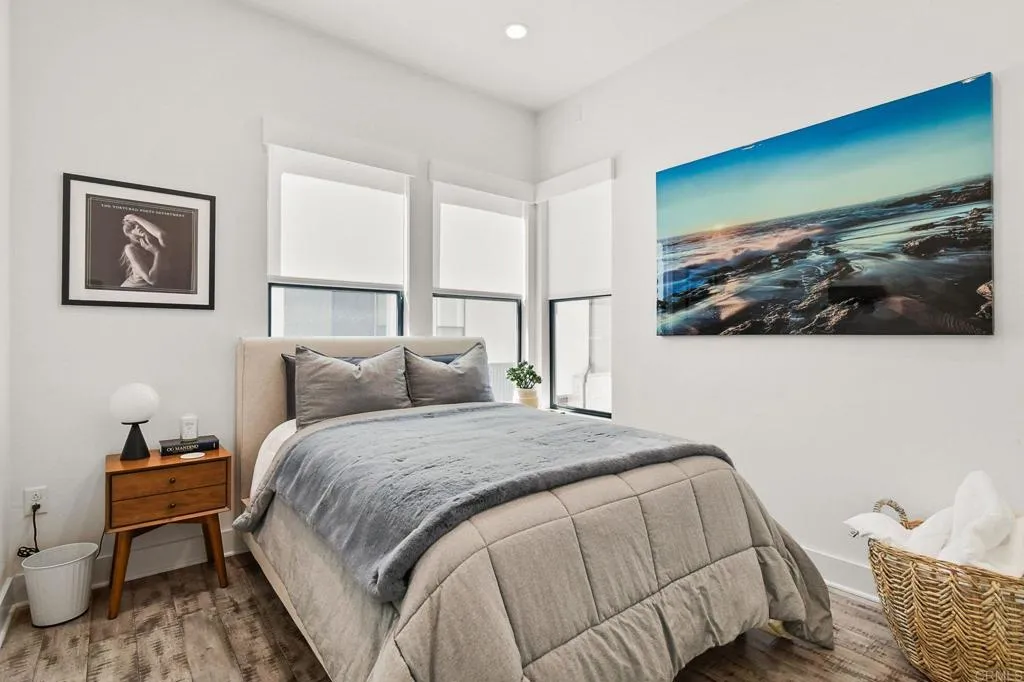 LUCENT II Prime Location - Panoramic View Located in one of Civitas most desirable areas, this highly upgraded corner residence offers a bright, open layout with panoramic views of Civita Park and a strong sense of privacy. Thoughtfully maintained, the home combines modern finishes with comfortable living in a prime Mission Valley location. The open-concept floor plan features a well-appointed kitchen with stainless steel appliances, custom cabinetry with maple interiors, roll-out shelving, under-cabinet lighting, and quartz countertops. The living and dining areas are enhanced by a custom brick feature wall, adding warmth and character. Offering 3 bedrooms, 2 full baths, and a guest powder room, the layout provides flexibility for everyday living. A spacious private balcony extends the living area and is ideal for relaxing while enjoying expansive park views. Additional highlights include wood flooring, window treatments, blockout courtains, and a generously sized garage. Situated within Civitaan award-winning master-planned communityresidents enjoy membership to a resort-style recreation center, along with access to walking paths, dining, fitness, and nearby Fashion Valley. Conveniently located just minutes from the beach, downtown, and major San Diego destinations.