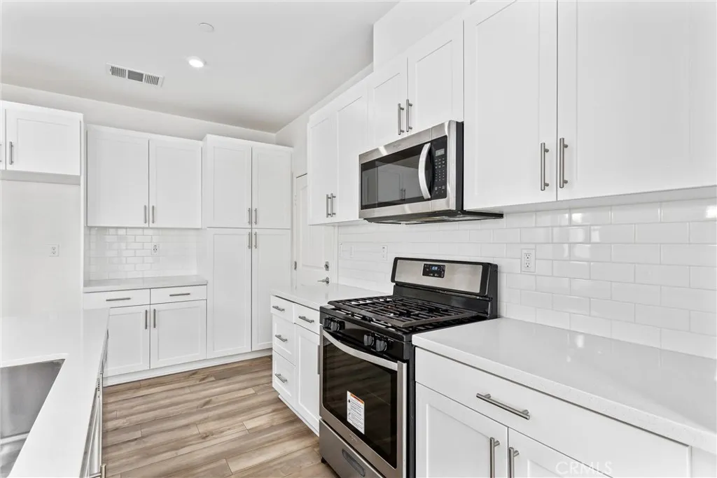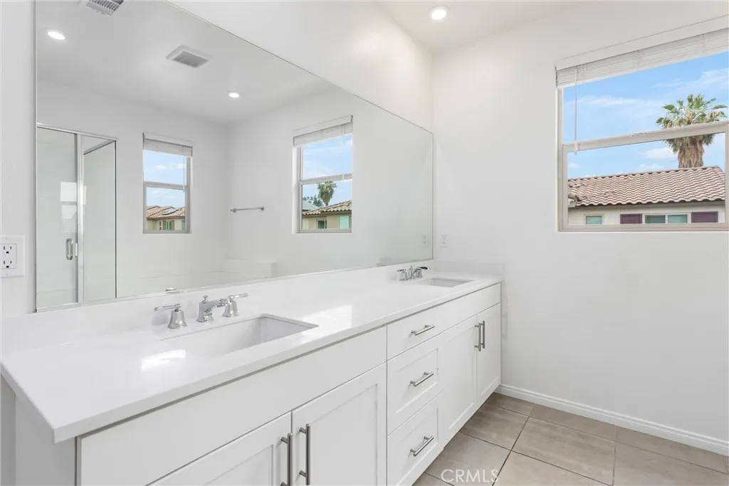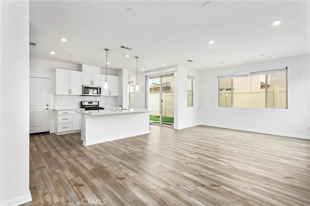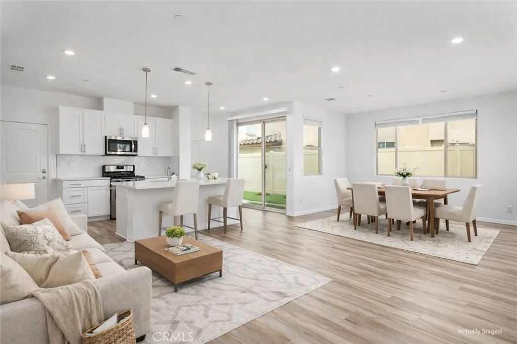 Welcome to this beautifully upgraded 4-bedroom, 3-bath home located in the newer gated community of The Enclavewhere comfort, efficiency, and thoughtful design come together. Featuring paid-for solar and a highly sought-after downstairs bedroom with a full bath, this home offers flexibility for multi-generational living, guests, or added everyday convenience right from the start. Step inside to an inviting great room at the front of the home, seamlessly blending the kitchen, living, and dining areas into one open-concept spaceideal for both everyday living and entertaining. The spacious kitchen is a true centerpiece, showcasing white quartz countertops, soft-close cabinetry, stainless steel appliances including a gas range, microwave, and dishwasher, along with convenient sliding door access to the backyard. Throughout the home, youll appreciate the many upgrades including waterproof vinyl wood plank flooring downstairs, brand new carpet upstairs, fresh interior paint, and recessed lighting that enhances the bright and modern feel. Upstairs, a versatile loft offers the perfect flex space for a media room, playroom, or home office. The expansive primary suite is privately situated and features a generous bedroom, an en-suite bath with dual sinks, a glass-enclosed walk-in shower, soaking tub, and an oversized walk-in closet. Two additional bedrooms, a full bathroom, and a spacious upstairs laundry room complete the second level. Outside, enjoy a low-maintenance backyard designed for ease and sustainability, featuring eco-friendly synthetic turf and a mature lemon treeperfect