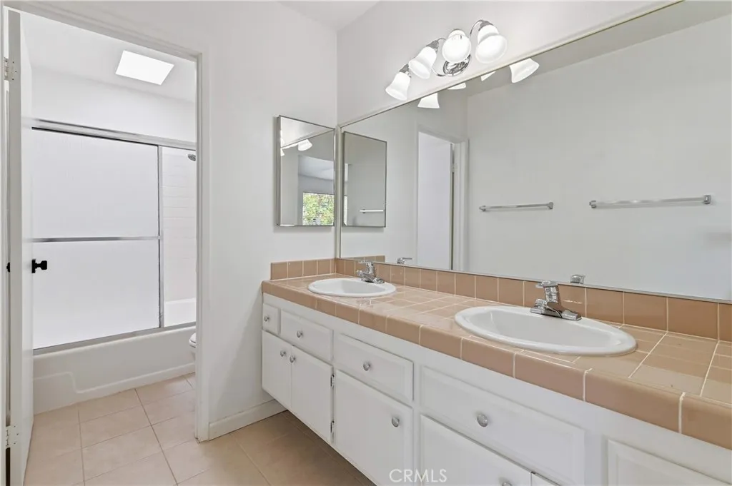 Welcome to Dove Creek! Rare corner-unit townhome featuring a functional 2-bedroom, 2-bath layout with a private entrance and large wrap-around patio. Located in the highly sought-after Dove Creek community, this home offers privacy, lush parklike grounds, and a peaceful, resort-style setting. Double-door entry opens to a bright, open floor plan with high ceilings, recessed lighting, and abundant natural light. Unique split-level design includes a spacious living room, dining area with bar, and a versatile second room with closet, window, and private entryideal for guests or office. Expansive private patio with brick pavers and turfperfect for entertaining. Corner location with only one shared wall enhances privacy. Upper level features an oversized primary suite with en-suite bath, dual sinks, and soaking tub. Upgraded electrical panel and newer roof. Community amenities include pool, spas, tennis courts, and beautifully maintained grounds. Prime location near shopping, dining, and entertainment.