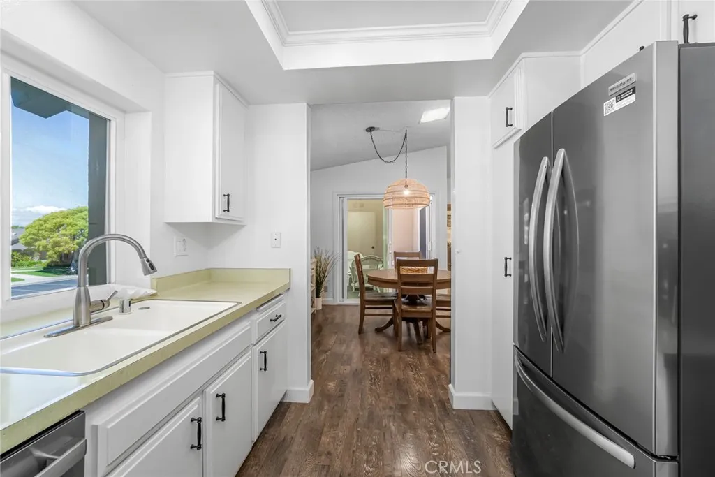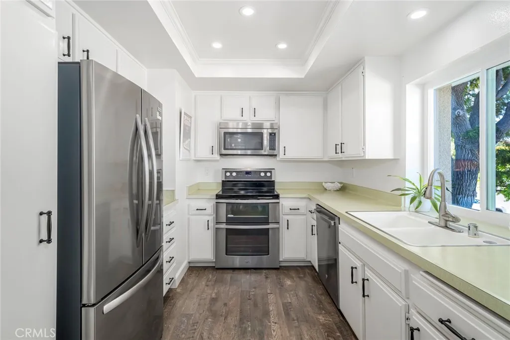 SERIOUSLY!.Do not make an offer on another home until youve toured this one first!!! True pride of ownership does not begin to describe this DREAM of a home! Located in the highly coveted guard gated 55+ Community of Huntington Landmark. This bright and open end-unit Pacifica floorplan which shares only one common wall, has an OVERSIZED outdoor balcony accessed by two sliding doors which gives this home a beachy indoor-outdoor living feel. The home features newer double paned windows and sliding doors, newer vinyl wood flooring, newer refrigerator, newer dishwasher, newer washer and dryer, newer furnace, and newer water heater. The natural light that bathes this home will uplift anyones spirit who walks through the front door. Upon arrival, the outdoor landing is adorned with an array of meticulously curated plants and flowers. Once inside, the cathedral ceilings with skylight just adds to the voluminous feeling of space and freedom this home exudes! The well-appointed kitchen with stainless steel appliances has a window in front of the sink allowing you to look out onto the lush green open spaces and blue skies. The quiet interior location of this condo is situated far from neighboring buildings which affords you an immense sense of privacy! This condo also comes with a private garage with newer aluminum roll up door and remote, which is located right next to the building. Also, there is an ABUNDANCE of additional open parking spaces situated all around the building. If this ALL isnt enoughthe condo comes turnkey furnished (per inventory)! Most importantly, you will be sur