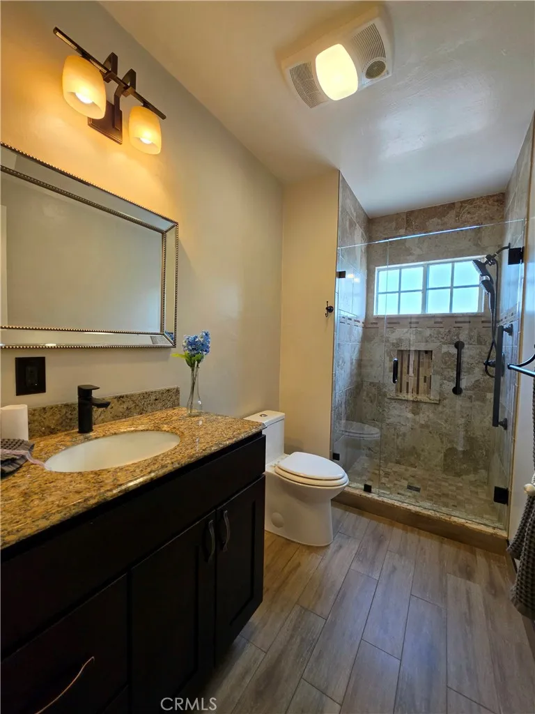 Fantastic Single Level Home with Double Attached Garage Curved Concrete Driveway with Plenty of Off Street Parking. 4 Bedrooms 1.75 Baths (Both Remodeled with Newer Decor Tile Vanity Cabinets Granite Counters Glass Shower Enclosures) Spacious Kitchen with Natural Wood Cabinets - Stainless Steel Sinks Built Stove and Hood - Stainless Steel Refrigerator and Dishwasher - Granite Counter - Beautifully Refinished Hardwood Flooring in Living Room and Bedrooms Brick Fireplace in Living Room Private Backyard with Concrete Patio Built in Bar B Que Hearth in Fireplace System Sectioned Laundry area off with private entry from Garage to Home. Beautiful Landscaped Front Yard. Newer HVAC and Heater System. Newer Canned Lighting in Bedrooms Living Room and Kitchen