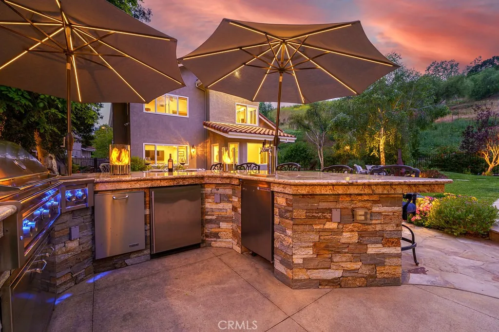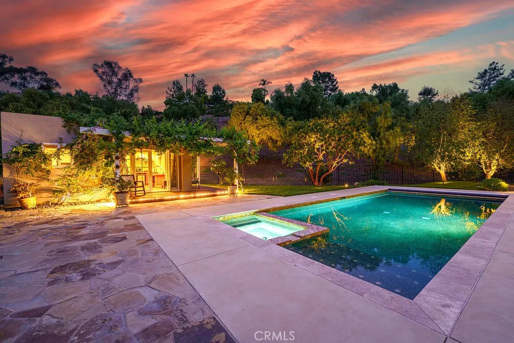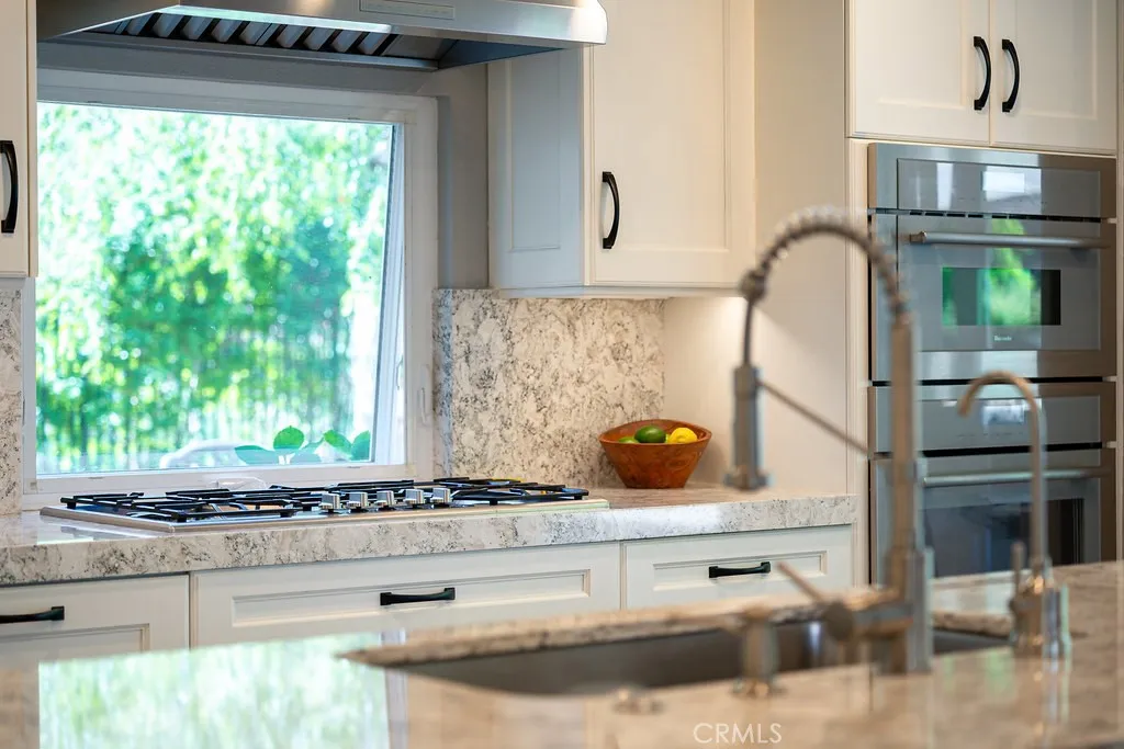 Tucked at the end of a quiet cul-de-sac, this is one of Laguna Niguel's most exceptional and rarely available offerings, a fully remodeled, thoughtfully expanded estate positioned on an approximately 20,000 sq ft lot with just one neighboring home and sweeping natural hillside as your backdrop. Four bedrooms, three baths, a bonus room, PLUS a detached casita combine to create a compound-style retreat where privacy, luxury, and versatility coexist effortlessly. From the moment you enter, the quality of the renovation is unmistakable. The reimagined kitchen anchors the main living area with an expanded layout, a sun-drenched breakfast nook wrapped in windows, and an oversized island with seating all finished in crisp white shaker cabinetry, neutral quartz countertops, and a full Thermador suite including built-in refrigerator, 5-burner gas cooktop, wall oven, microwave/convection oven, warming drawer, and dishwasher. The adjacent family room flows naturally from this space, greatroom style, centered on a wood burning brick fireplace that adds warmth and character. Upstairs, the primary suite is a true sanctuary, featuring a spa-caliber bath with freestanding soaking tub, dual-head walk-in shower, and refined double vanity. Additional bedrooms share a separate wing with a versatile bonus room, ideal as a playroom, home office, or media space. Bathrooms throughout the home have been tastefully renovated with designer finishes. Outside, the property transcends the expected. A resort-scale backyard unfolds behind mature trees and natural hillside, lush, private, and seemingly bou