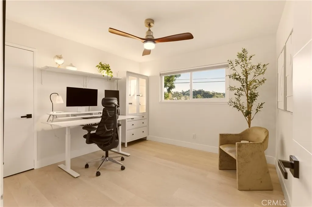 Experience the ease of everyday living in this thoughtfully upgraded 5-bedroom, 3-bathroom home, tucked into a quiet hillside neighborhood of Diamond Bar. With natural light pouring in and a layout designed to bring people together, the home offers a comfortable balance of openness and privacy, highlighted by a stunning backyard with scenic, panoramic hillside views with incredible ADU or pool potential. The main living space flows effortlessly, grounded by warm earth-tone flooring and a kitchen that naturally becomes the heart of the home. Outfitted with a 36-inch stove, custom exhaust, stainless steel appliances, updated soft-close cabinetry, and a generous quartz peninsula, its a space where meals, conversations, and daily moments come together with ease. A downstairs bedroom offers flexibility for guests, a home office, or a creative space. Upstairs, the primary suite feels like a quiet retreat, complete with a walk-in closet and a private updated bath with a walk-in shower. Additional bedrooms are spacious and share an upgraded dual-sink bathroom. Extensive improvements have been invested in the home from its renovation day until today. Wood gated fencing, plumbing updates, fresh interior paint, an updated garage door, treetop removal to open up the views, front and side gutters, and a refined kitchen stone backsplash, along with other touches that make it a forever home. The backyard offers space to unwind, entertain, or simply enjoy the surrounding hillside setting and views. From bright, sun-filled days to glowing twilight evenings, offering a different experience a