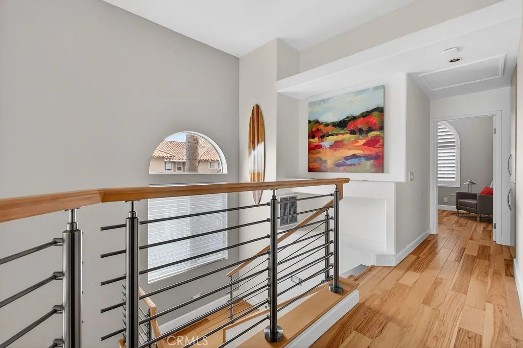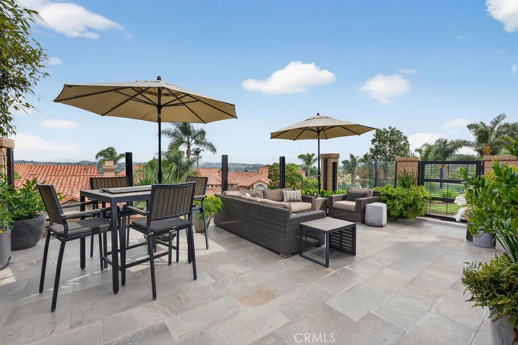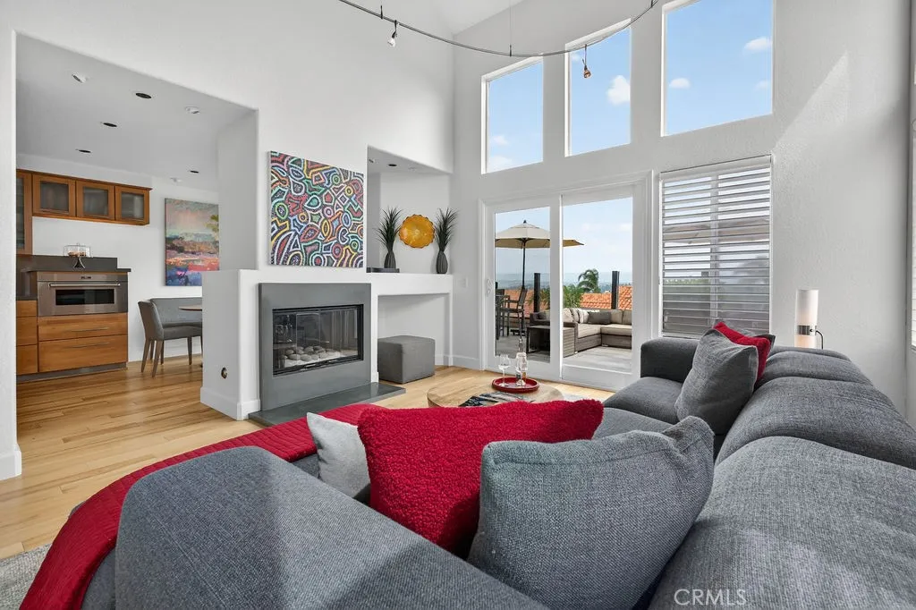 Welcome to your dream home in the coveted Niguel Summit! An exceptional end-unit residence filled with abundant natural light and showcasing breathtaking panoramic views of the ocean, mountains, and sparkling city lights. Extensively remodeled with a designers eye, the home has been thoughtfully reimagined into an open concept living space, creating seamless flow and striking details. A custom concrete fireplace and statement staircase anchor the space, while frosted glass doors and curated lighting throughout add a refined, contemporary edge. At the heart of the home, the gourmet kitchen is a true showpiece. Fully redesigned with custom cabinetry, quartz countertops and backsplash, imported Italian fixtures, and a sleek stainless steel sink. Outfitted with high-end appliances, including a Wolf dual-fuel range and Wolf speed oven/microwave, this kitchen blends elevated design with everyday functionality. The primary suite offers a private retreat, featuring a beautifully redesigned ensuite bath with a spa tub and shower, custom cabinetry, premium fixtures, and a California Closets system. The secondary bedroom is equally well-appointed with custom built-in cabinetry and a Murphy bed, plus an upgraded bath with rain shower and elegant finishes. Additional highlights include hickory-engineered wood flooring throughout, custom baseboards, silhouette blinds, and custom shutters. Modern living is effortless with integrated smart home features, an audio visual system, and Nest-controlled climate and lighting. Step outside to your private patio, with ocean views, beautiful surroun