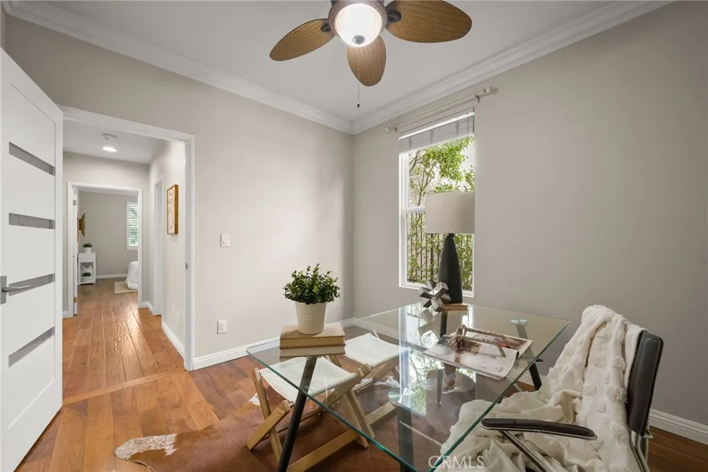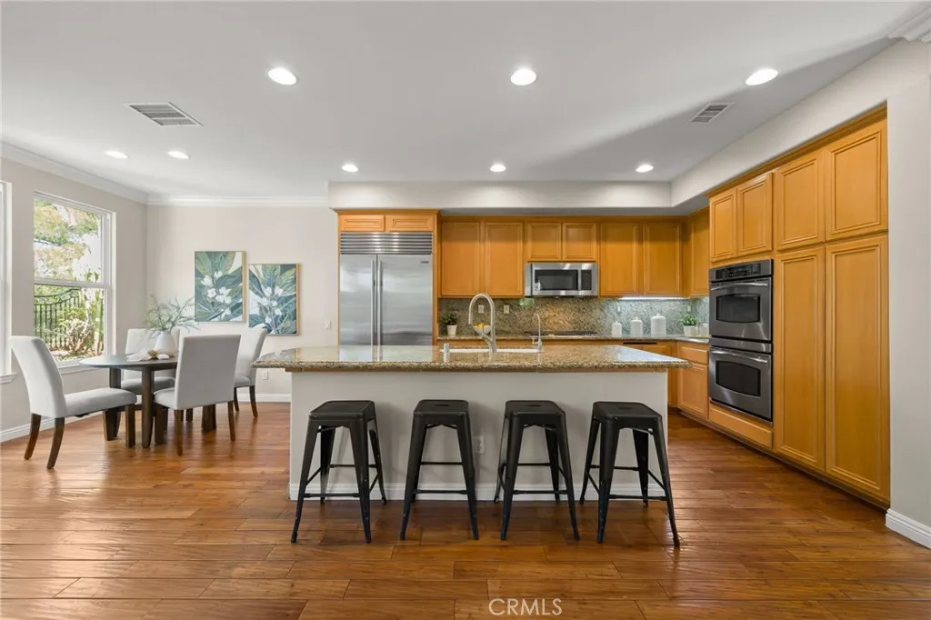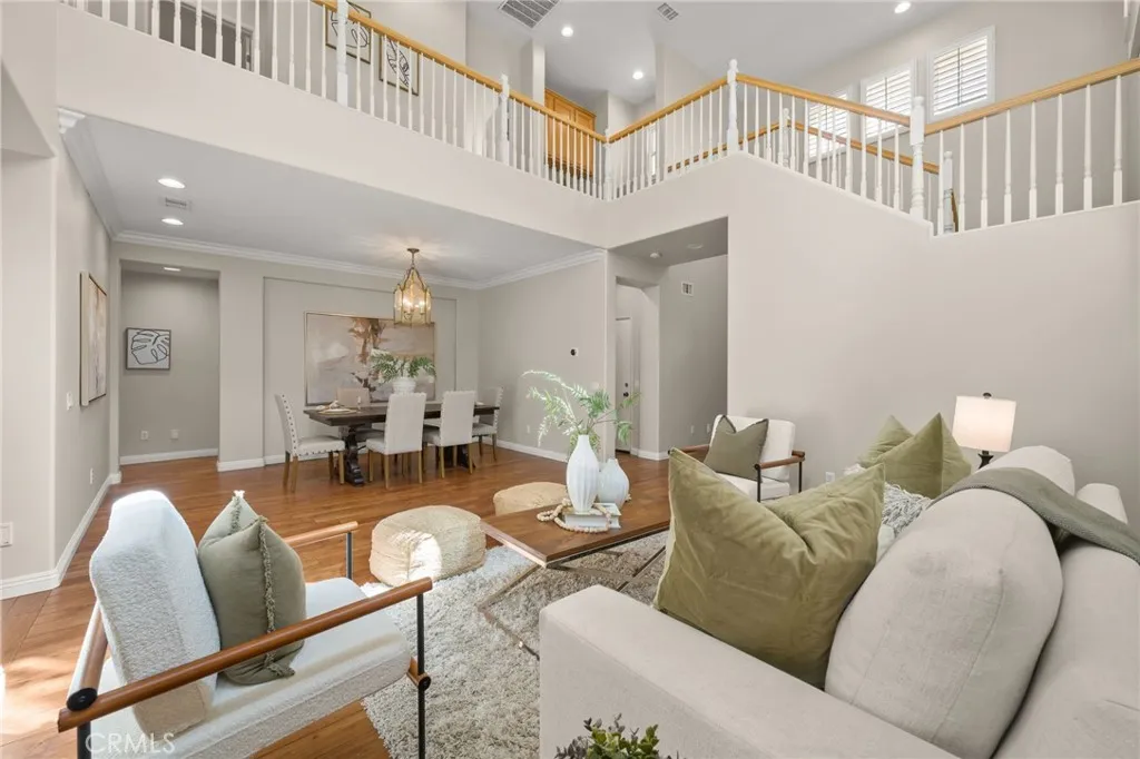 Welcome to this beautifully updated 5-bedroom, 3-bathroom home located in the highly desirable gated Sorrento community of Porter Ranch, featuring one of the lowest HOA dues in the area. Offering approximately 2,800+ sq ft, this home presents exceptional value as one of the lowest priced 5-bedroom homes currently available in Porter Ranch. Recently upgraded with fresh interior paint and brand-new flooring upstairs, the home offers a bright and functional open floor plan. The main level features high ceilings, a formal dining area, and a kitchen that opens to the family roomideal for everyday living and entertaining. A downstairs bedroom and full bathroom provide flexibility for guests or a home office. UUpstairs, the spacious primary suite serves as a private retreat with a walk-in closet and en-suite bathroom. Secondary bedrooms are generously sized and include a convenient Jack and Jill bathroom, perfect for functional family living. Additional highlights include abundant natural light, attached garage, and a private backyard. Residents enjoy access to two community pools and the convenience of three gated entrances. Ideally located near top-rated schools, parks, shopping, and dining.