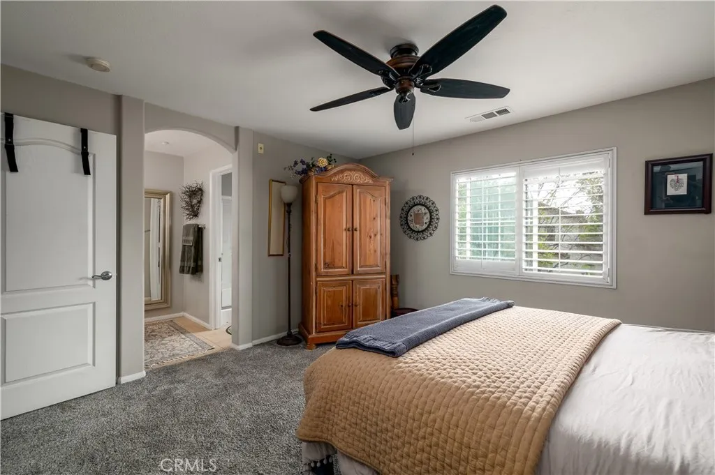 Experience a home designed for both elegance and effortless living. As you step inside, youre greeted by the warmth of real wood floors that stretch across a layout that truly flows well, seamlessly connecting the formal and casual living spaces. The kitchen boasts granite countertops. The windows are framed by classic plantation shutters, offering a perfect balance of privacy and natural light. The crown jewel of this floor plan is the two primary bedroom suites, which provide a level of versatility, whether you need a dedicated space for multigenerational living, a high-end guest retreat, or a luxurious home office, these dual sanctuaries ensure everyone enjoys their own private oasis. Living in Harveston, you are part of one of Temeculas most prestigious master-planned communities. Life in Harveston means morning strolls along the 1-mile lakefront trail, weekend boat rentals at the Harveston Lake House, and cooling off at the junior Olympic-sized pool and splash park.