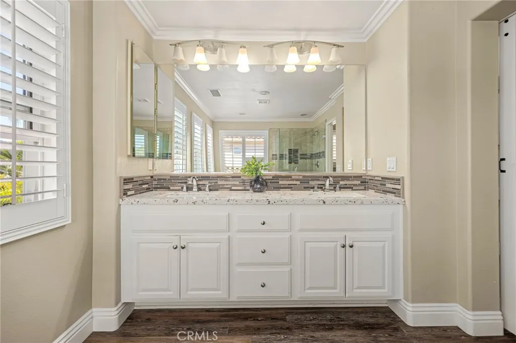 ***HIGHLY UPGRADED + PAID OFF SOLAR*** Welcome to this highly upgraded masterpiece nestled in the prestigious Canyon Hills community of Lake Elsinore. This gorgeous residence perfectly blends sophisticated design with functional comfort, offering a spacious floor plan that includes 4 bedrooms and 3 bathrooms. From the moment you step inside, the attention to detail is evident, featuring elegant plantation shutters and high-end upgraded wood flooring that flows seamlessly through the main living spaces. The heart of the home is a chefs dream kitchen, meticulously designed with sleek granite countertops, a large central island, and upgraded white cabinetry. Professional-grade stainless steel appliances and a custom tiled backsplash complete this culinary haven, which opens directly into the bright, airy family room, ideal for both daily living and grand entertaining. For those needing a dedicated workspace, the main floor offers a versatile office/den, along with a convenient downstairs bedroom and full bathroom, perfect for guests or multi-generational living. Upstairs, the home continues to impress with a versatile loft, providing the perfect secondary hangout spot or media room. Youll stay comfortable year-round with the peace of mind provided by two newer A/C units. The primary suite serves as a true retreat, while the additional bedrooms are generously sized and well-appointed. Step outside to your private backyard oasis, where indoor-outdoor living is elevated by a premium alumawood patio cover and stylish stamped concrete throughout. Whether you're hosting a summer BBQ