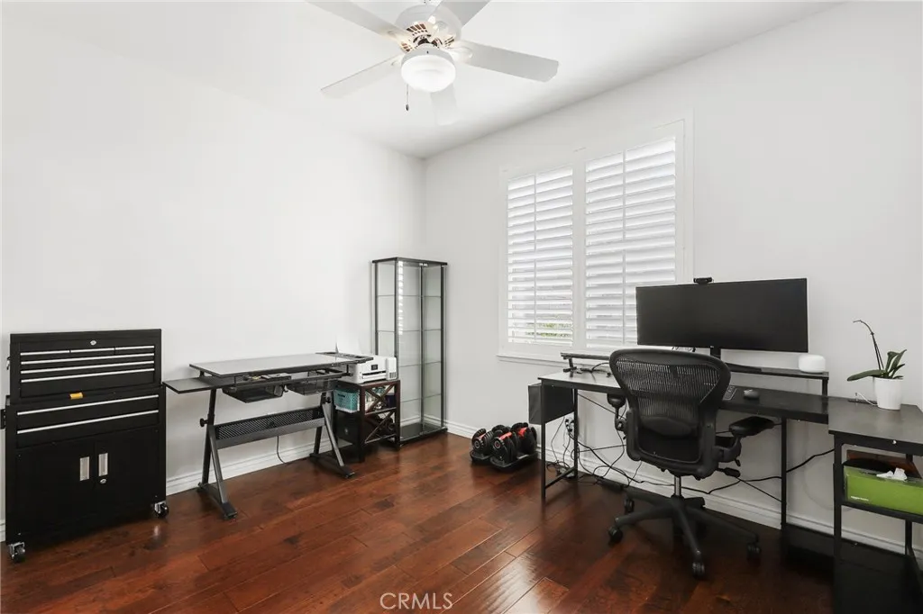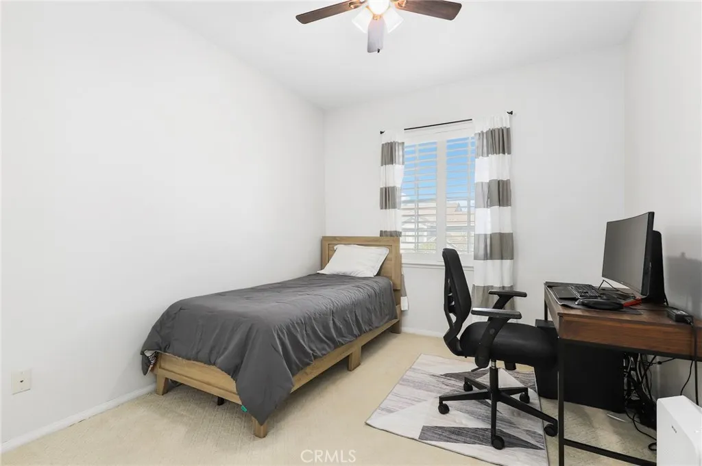 Welcome Home to 14450 Laurel Lane, a beautifully updated home in the Loretto Alterra at Serenata community. Tucked away far behind the gates, mother nature is your backyard neighbor. Step inside to soaring ceilings where natural light creates warmth and illuminates the beautiful wood floors. The home's ground floor reveals a proper living room, a dining room, a family room with a fireplace off the chef's kitchen, and a full bedroom and bathroom for guests or extended visits. The kitchen has been modernized with new quartz countertops, an updated sink, and stainless-steel appliances, while all upstairs windows feature custom plantation shutters. Outside, the backyard has been enhanced with professionally designed hardscaping, offering a low-maintenance space to enjoy the serene surroundings, and a large side yard provides ample space for storage or a dog run. The tandem garage area offers flexibility, easily transformed into a home office, gym, or additional storage room. An Electric Vehicle charger has been installed for convenience, and the newer garage door adds both functionality and curb appeal. With no neighbors behind the home, you can enjoy more privacy and the natural beauty surrounding the property, all within the gates of Loretto Alterra at Serenata in Moorpark. Gated, Painted, Privacy, call and tour.