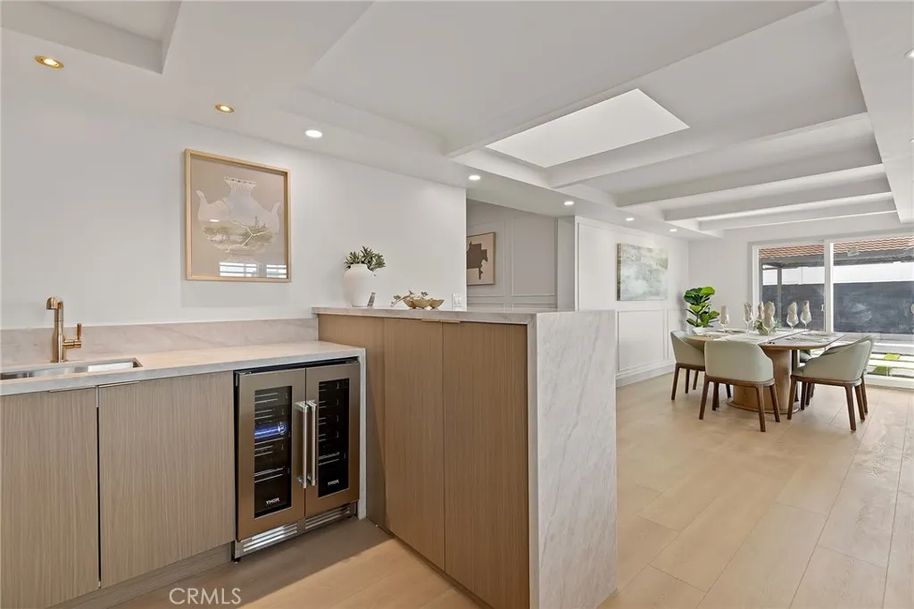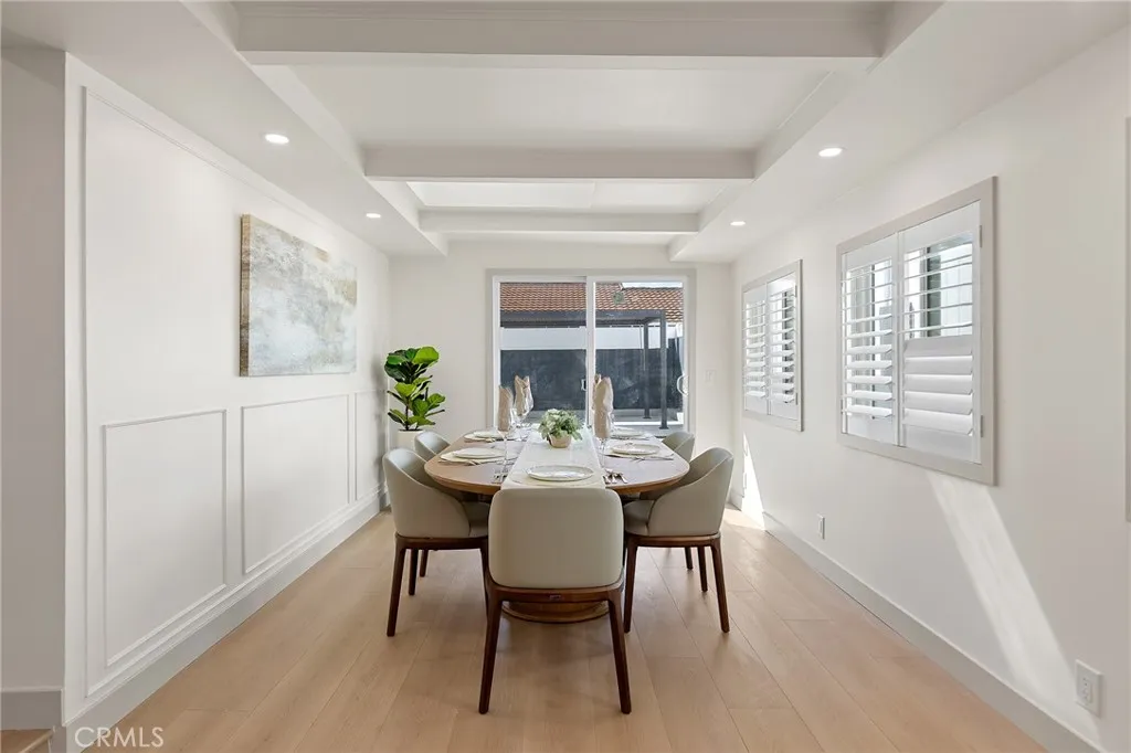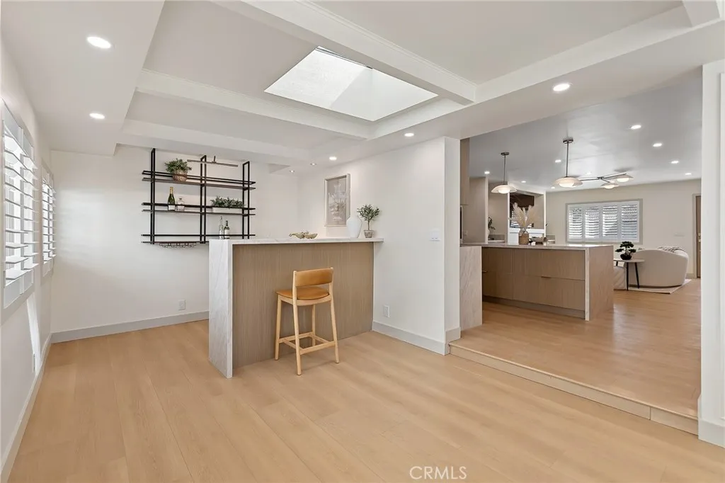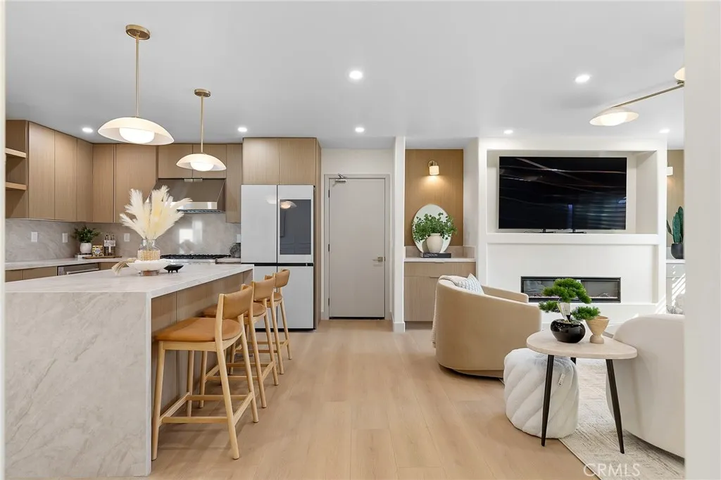 Welcome to 2705 E Orange Grove Avenue, Orange a stunning contemporary residence perfectly positioned on a desirable corner lot in a beautiful and quiet neighborhood. This thoughtfully redesigned home embodies modern minimalism, showcasing clean architectural lines, a calming neutral palette, warm natural wood finishes, and an abundance of natural light throughout. The open-concept layout seamlessly connects the living, dining, and kitchen areas, creating an airy and sophisticated space ideal for both everyday living and entertaining. A sleek fireplace with custom built-ins anchors the living room, while the designer kitchen features flat-panel cabinetry, stone countertops, high-end stainless steel appliances, open shelving accents, and an oversized island that serves as a striking focal point. The bonus room with a stylish wet bar offers incredible flexibility perfect for entertaining, a media lounge, home office, or guest retreat. Spacious bedrooms continue the homes serene aesthetic, and the spa-inspired bathrooms feature elegant tile work, modern fixtures, and glass-enclosed showers with refined brass accents. Large windows with plantation shutters enhance both privacy and natural light, while wide-plank flooring flows effortlessly throughout the home. Step outside to a private backyard with a covered patio structure and low-maintenance landscaping, offering excellent potential for outdoor dining, relaxation, or future customization. With its prime corner location, contemporary minimalist design, functional floor plan, and move-in-ready appeal, this home delivers style