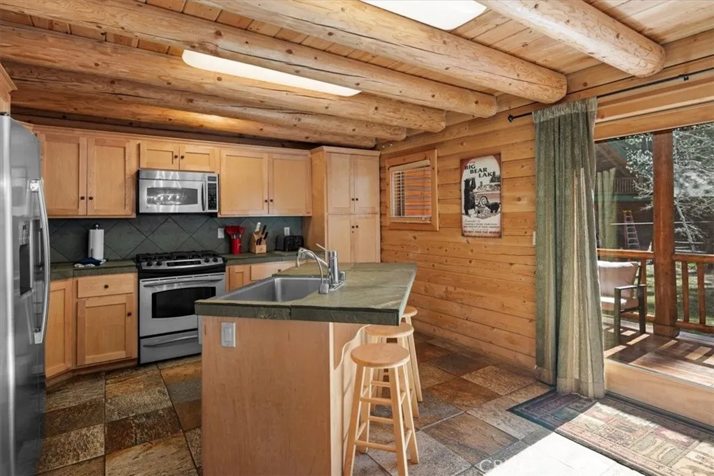 Prime Location Near Snow Summit! Ideally situated just a short walk from Snow Summit Resortdirectly across from the overflow parking lotthis home offers unbeatable access to year-round adventure. Enjoy being only approximately 5 minutes from the lake and village, and about 7 minutes from Bear Mountain Resort. Nestled near the desirable Winter Park neighborhood, the area is perfect for peaceful strolls along its level, walkable streets while still being close to all the action. This striking home boasts exceptional curb appeal with impressive rock and log accents that stand out immediately. Inside, youll find 6 spacious bedrooms and 4 bathrooms, including a convenient primary suite on the main level. The upper level features an additional ensuite bedroom along with a game areaperfect for entertaining or relaxing. Set on a generously sized lot, the property offers ample outdoor space surrounding the entire home. A rare combination of location, character, and spacethis home truly has it all!