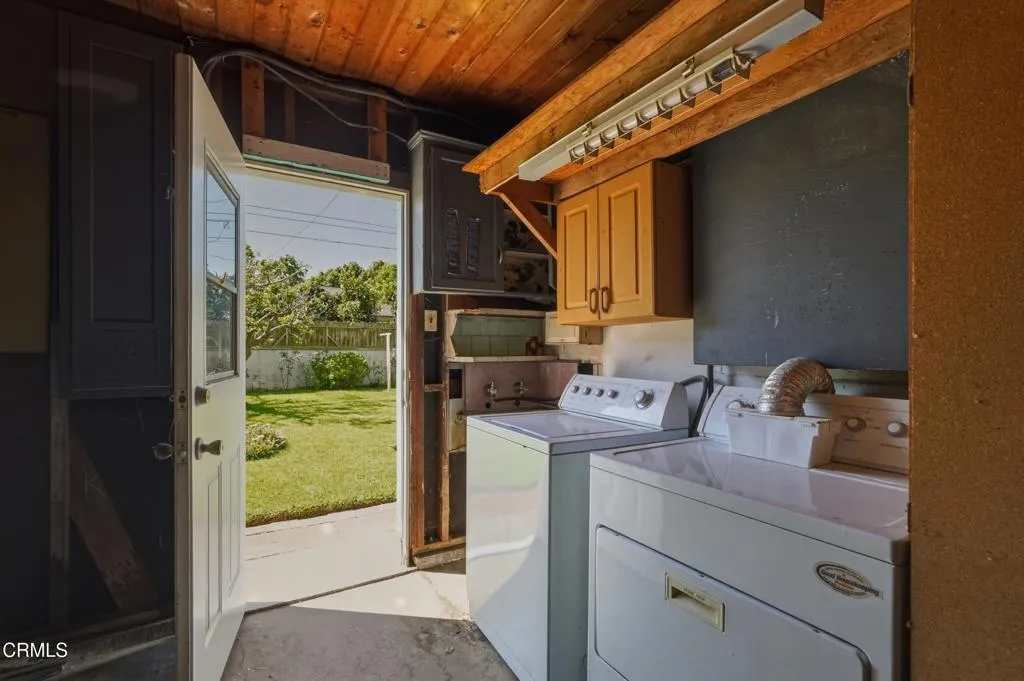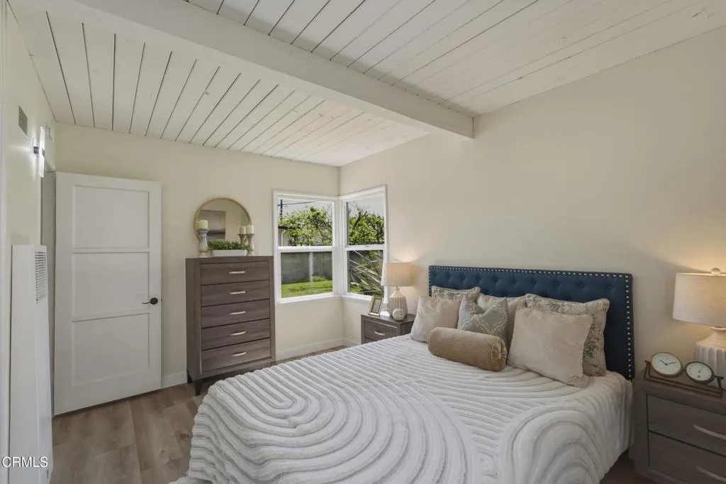 Charming and move-in ready, this 3 bedroom, 1 bathroom home in the heart of Hawthorne offers a perfect blend of comfort, style, and functionality. From the moment you arrive, you're welcomed by a well-maintained front lawn, clean lines, and inviting curb appeal complete with a long driveway and covered parking. Inside, the home features a bright and airy living room with vaulted, beamed ceilings, abundant natural light, and updated flooring that flows seamlessly throughout. The thoughtfully designed kitchen offers ample cabinetry, granite countertops, and a cozy dining area with views of the backyard, creating an ideal space for both everyday living and entertaining. Each bedroom is well-sized with generous closet space, while the bathroom maintains its classic charm with well-kept tilework. Step outside to a spacious backyard featuring lush green grass, mature landscaping, a patio area perfect for outdoor dining, and a detached structure ideal for storage or potential creative use. Conveniently located near local schools, parks, shopping, and major freeways, this home presents an excellent opportunity for both homeowners and investors alike.
