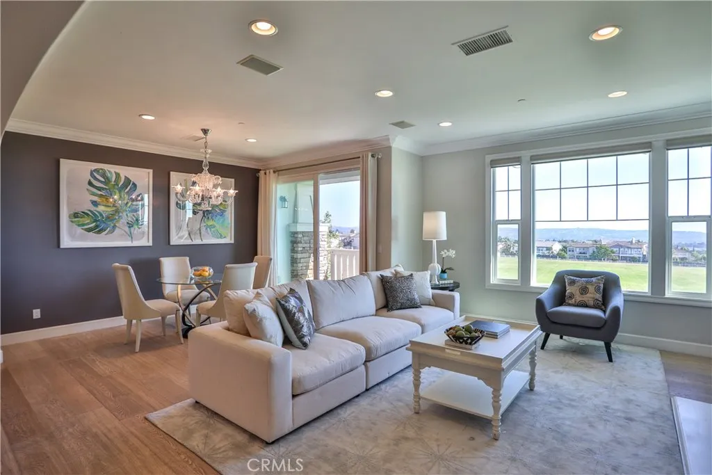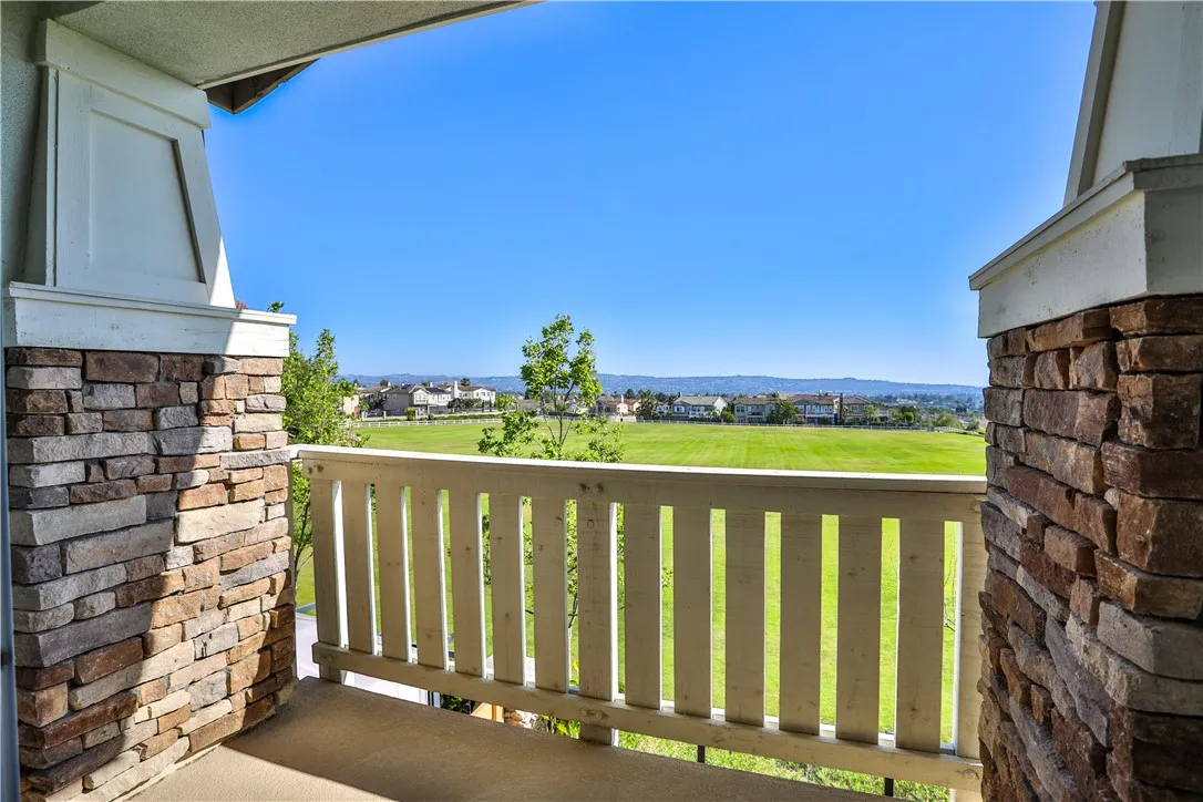 Spectacular views from this desirable townhouse located adjacent to Black Gold Golf Club. This thoughtfully designed 3-level home offers maximum privacy, with each bedroom featuring its own en-suite bath. Featuring 3 bedrooms and 3.5 bathrooms, the home is tastefully upgraded with hardwood flooring, crown molding, and custom window coverings throughout. The living room includes custom built-in cabinetry, while the gourmet kitchen boasts a center island and top-of-the-line appliances. The spacious primary suite offers a luxurious bath and a large walk-in closet. Located in the highly desirable Vista Del Verde community with amenities including pool, spa, clubhouse, and fitness center. Situated within an excellent school district.