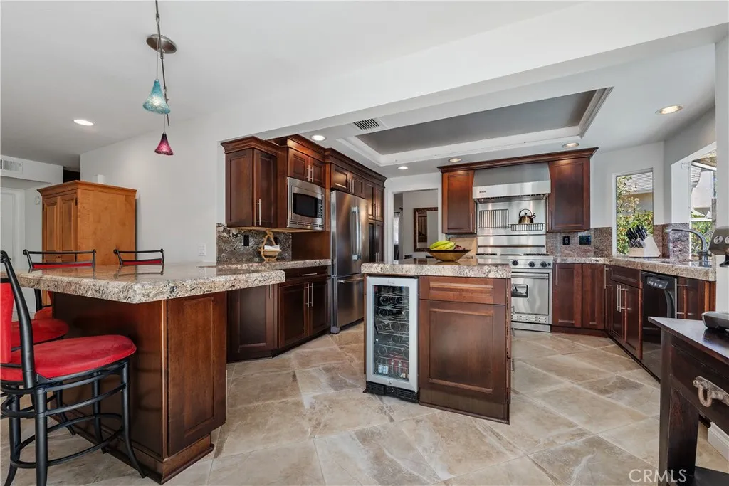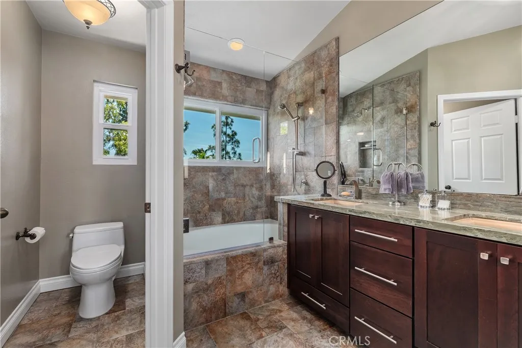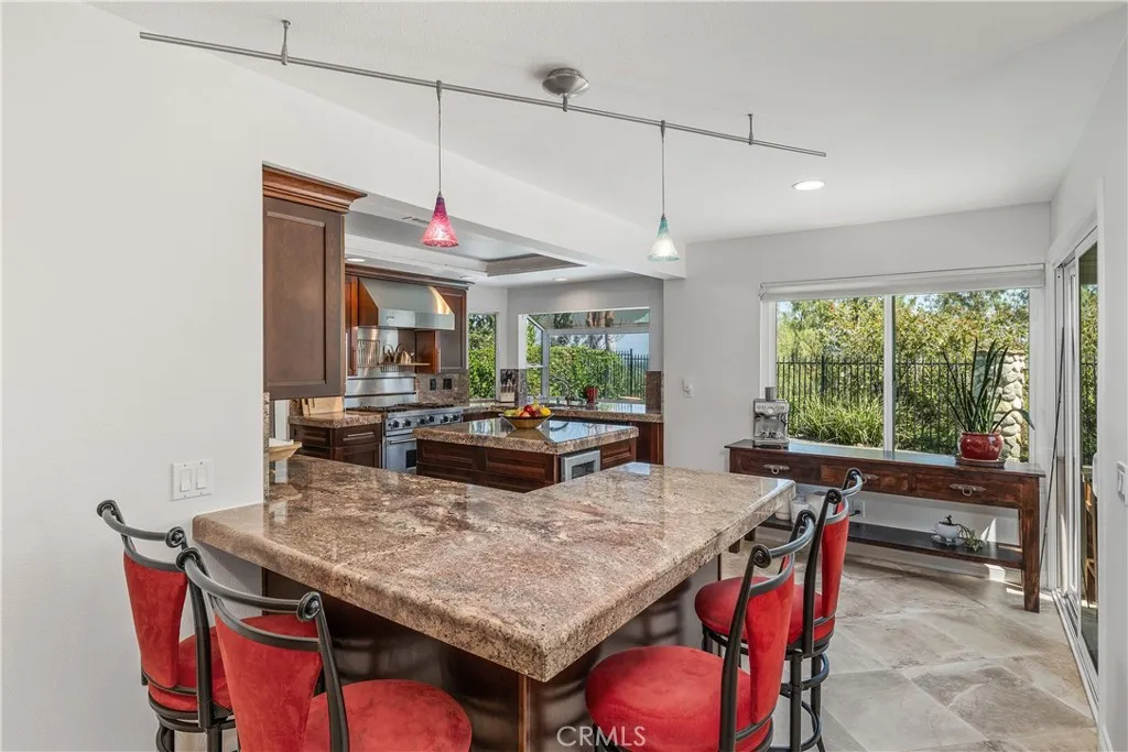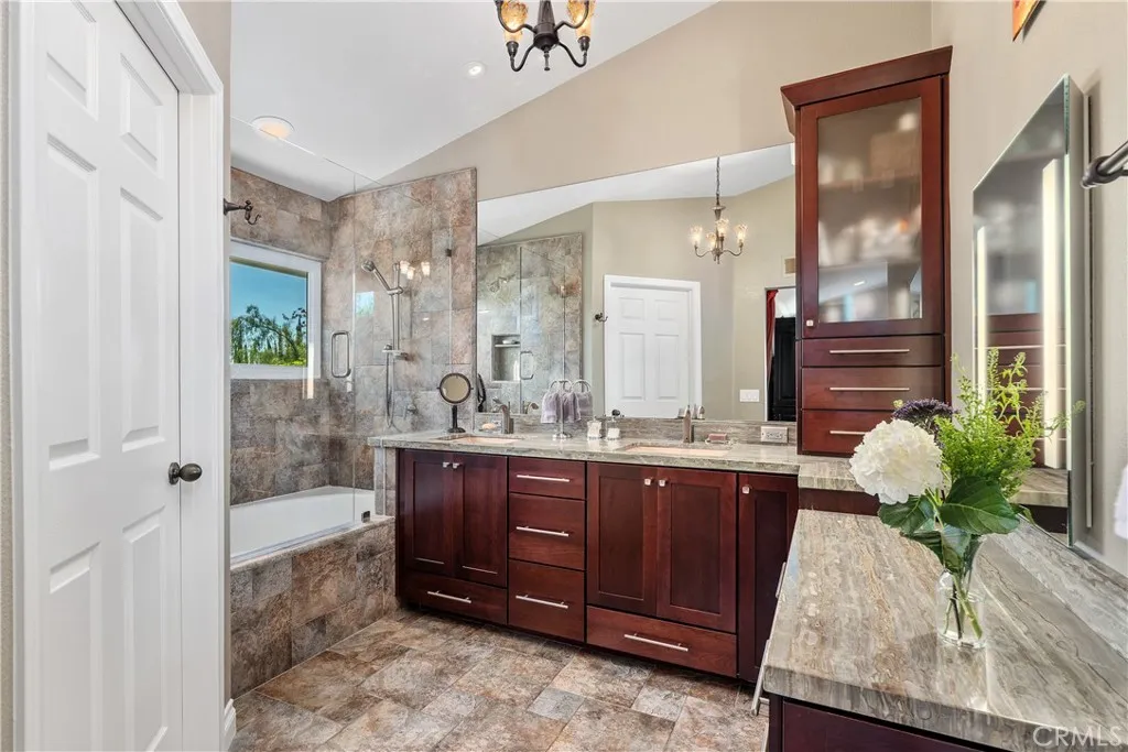 Seeking privacy, resort-style living, and breathtaking sunrise views? Welcome home! A charming covered stone porch invites you into this immaculate, freshly painted four-bedroom, three-bath residence designed for both comfort and entertaining. The living room and formal dining area showcase soaring cathedral ceilings and are complemented by a granite-topped wet bar that also serves the adjacent family room. The gourmet kitchen is a chefs dream, featuring a Viking oven with grill and gas cooktop, microwave, beverage refrigerator, granite countertops, and a breakfast bar. The kitchen opens seamlessly to the warm and inviting family room, highlighted by a classic brick fireplace. The primary suite is a true retreat with cathedral ceilings, an expansive closet with built-ins, and a luxurious bathroom featuring marble countertops, dual sinks, and a dedicated vanity area. Upstairs, two additional bedrooms offer ceiling fans and mirrored wardrobe closets. The fourth bedroom (currently being used as an office) is conveniently located downstairs with direct access to a beautifully remodeled three-quarter bathroomperfect for guests or multigenerational living. Throughout the home, abundant dual-pane windows flood the interiors with natural light and capture stunning views of the sunrise, mature trees, and mountains beyond. Walls of glass open to an entertainers backyard complete with a spacious patio, sparkling pool, and relaxing spaideal for indoor-outdoor living. Additional highlights include a three-car garage, an extra-large driveway with ample parking, and a prime location in a