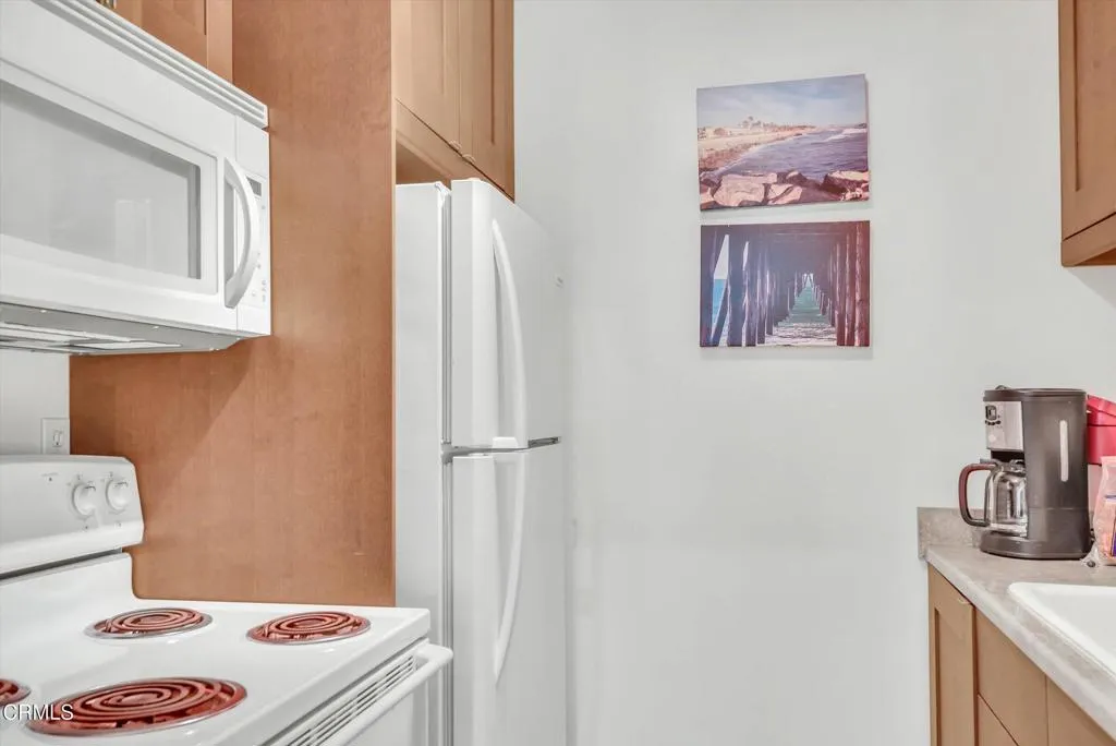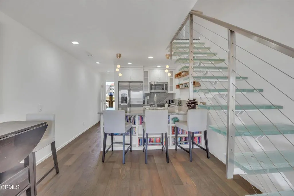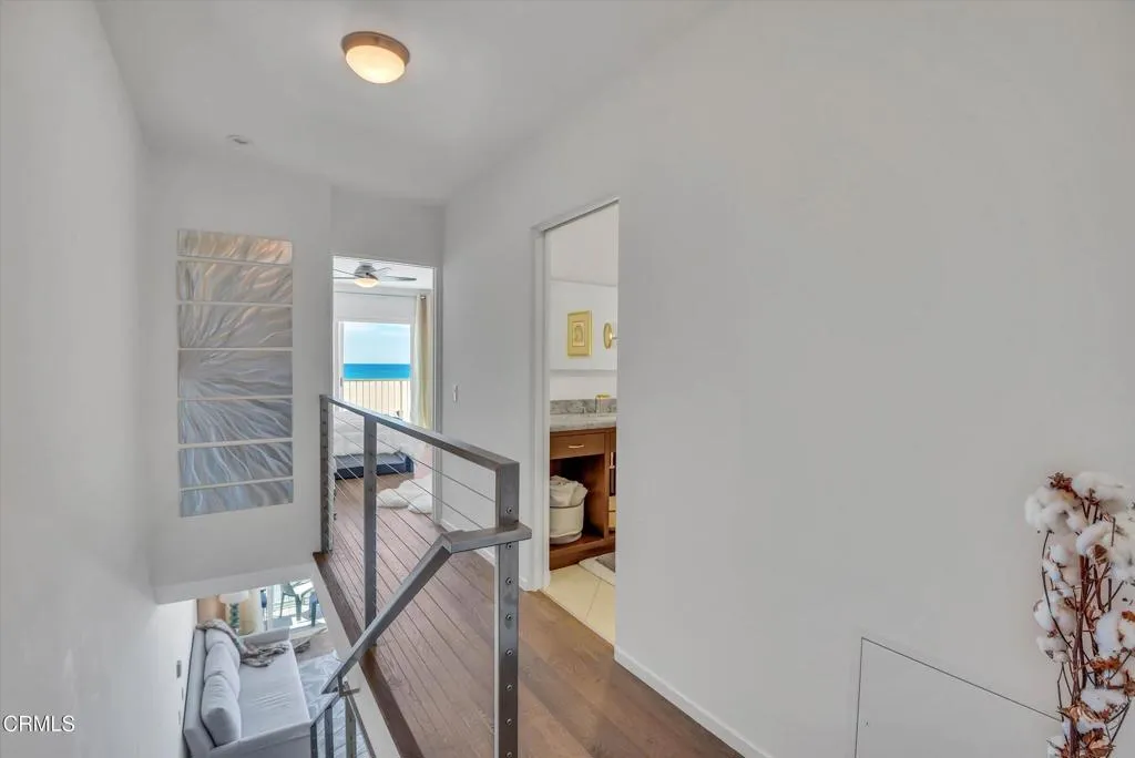Experience coastal living at its finest in this stunning 2-bedroom, 1.75-bath, two-story condo located in the gated Surfside I community, directly across from the beach and pier in Port Hueneme. Completely upgraded from floor to ceiling, this one-of-a-kind home showcases tasteful, high-end finishes and breathtaking design throughout.From the moment you step through the front door, you are greeted with unobstructed 180-degree ocean views that immediately captivate. The main level features an open living and dining area with direct access to a private balcony, perfect for enjoying the ocean breeze and sunsets. The beautifully remodeled kitchen offers a huge peninsula, quartzite countertops, custom cabinetry, and stainless steel appliances, blending functionality with modern elegance. Also on the main level are a three-quarter bathroom with limestone tile on the floor and wall, marble on the countertop and shower wall enclosure, a dedicated laundry area with side-by-side front-loading side by side washer and dryer, and ample storage.Upstairs, you'll find two bedrooms and a full bathroom featuring a jetted tub, limestone tile floor and tub wall, marble countertop and tub enclosure. The primary bedroom offers its own private balcony with sweeping ocean views, creating a serene retreat. The guest bedroom includes a separate private entry/exit, ideal for added flexibility.Additional highlights include bleached oak flooring throughout, mosaic marble flooring on both balcony decks, ceiling fans in the living room and both bedrooms, and a striking staircase with cable railing and cus
