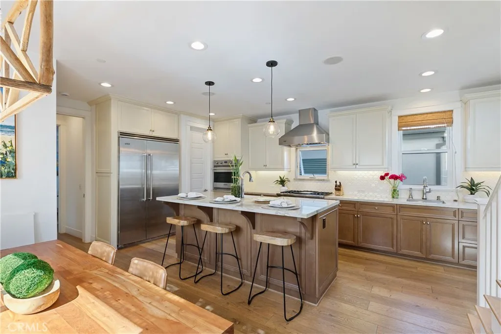 Discover this stunning Hermosa Beach single family residence, perfectly situated in a prime location with thoughtful upgrades you have to see to appreciate! The home is ideally located less than a 10 minute walk to the beach and has unbeatable proximity to the wood chip trail (the greenbelt) and Bi-Centennial Park, which you can access directly from the backyard. The humongous private roof top deck offers peek-a-boo ocean views and an outdoor kitchen with built-in-grill and firepit. The backyard patio has a spa, creating the perfect set up for entertaining or ultimate relaxation. Inside, youll find a blend of style and comfort in this meticulously renovated home. A few highlights include an open layout, a chefs kitchen with center island and high end appliances, wood beamed ceilings, abundant natural light, built-in surround sound, A/C and a washer/dryer set BOTH upstairs and downstairs. In addition to the kitchen, the reverse floor plan offers a primary ensuite, half bath, dining area and inviting living room with skylights, a cozy fireplace and a balcony to enjoy. The spacious primary ensuite is complete with separate vanities, a soaking tub, walk-in shower with dual shower heads and skylights. The main level has 3 additional bedrooms and 2 full bathrooms, making the total bedroom/bathroom count 4 and 4. Dont miss the rare opportunity to own a beautifully renovated beach home in this highly coveted, West of PCH pocket in Hermosa!