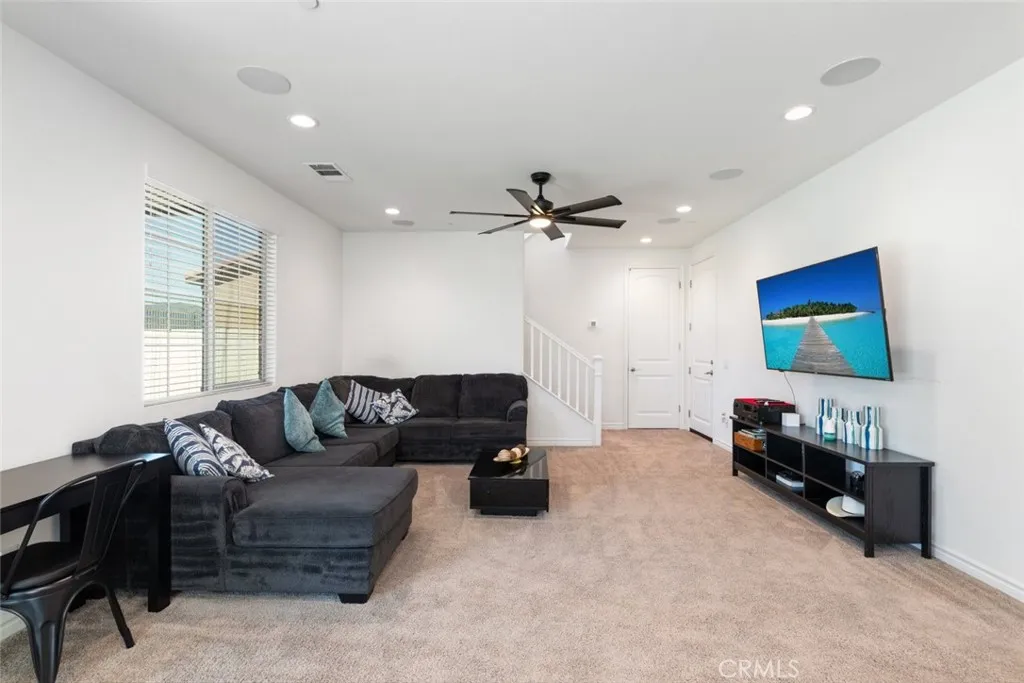 *** Seller to offer buyer $15,000 towards buyers closing cost on a full price offer*** Welcome to 29077 Soraya in the highly sought-after Summerly community of Lake Elsinore! This beautifully upgraded home offers 1,929 sqft of modern living space, featuring 4 bedrooms and 3 bathrooms, including a full bedroom and bath downstairs, perfect for guests, in-laws, or a home office. Step inside to an open-concept floor plan designed for both everyday living and entertaining. The spacious kitchen is the heart of the home, showcasing crisp white cabinetry, granite countertops, stainless steel appliances, a stylish tile backsplash, and a large center island that flows seamlessly into the family room, complete with built-in surround sound for the ultimate movie or game night experience. Upstairs, youll find well-appointed bedrooms and a functional layout that maximizes comfort and privacy. Head outside to your private backyard retreat featuring a premium lot with no rear neighbors. Enjoy year-round outdoor living under the Alumawood patio cover with two ceiling fans, relax around the gas fire pit, and appreciate the low-maintenance turf landscaping. This home is also energy-efficient with 25 paid-off solar panels and TWO Tesla Powerwall battery packs, helping you save on utilities while staying powered up. Only five years old and loaded with upgrades, this Summerly gem checks all the boxes. Close to parks, pools, clubhouse, and all the amenities Summerly has to offer.