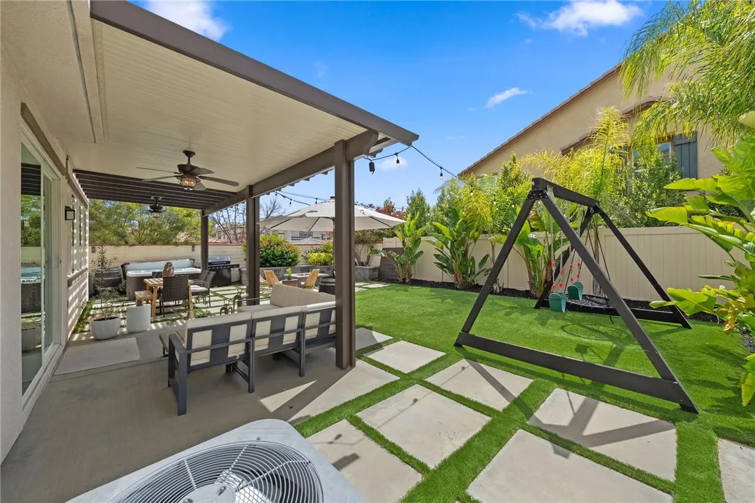Located on a corner lot in the gated community of Roripaugh Ranch, this beautifully updated 4 bedroom, 2.5 bathroom home offers a bright, open layout and thoughtful upgrades throughout. The home features luxury vinyl plank flooring, quartz countertops, and a spacious kitchen that opens to the main living area. The living room includes custom built-ins, and a downstairs bedroom provides flexibility for guests and/or a home office. The backyard is designed for easy indoor-outdoor living with a covered patio, low-maintenance artificial turf, fire pit with gas line, and a private spa. Additional features include a custom bar area with floating shelves and wine fridge, epoxy garage flooring, extended driveway with additional concrete, a 30-amp RV plug, owned 12-panel solar system, and recent exterior paint. Roripaugh Ranch is a gated, master-planned community known for its resort-style amenities and strong neighborhood feel. Residents enjoy access to a private clubhouse, fitness center, pool and spa, parks, playgrounds, sports courts, and scenic walking trails. Conveniently located in Temecula, the community is just minutes from shopping centers, restaurants, grocery stores, and Temeculas renowned wine country, with easy access to nearby freeways. The home is also located within the Temecula Valley Unified School District.