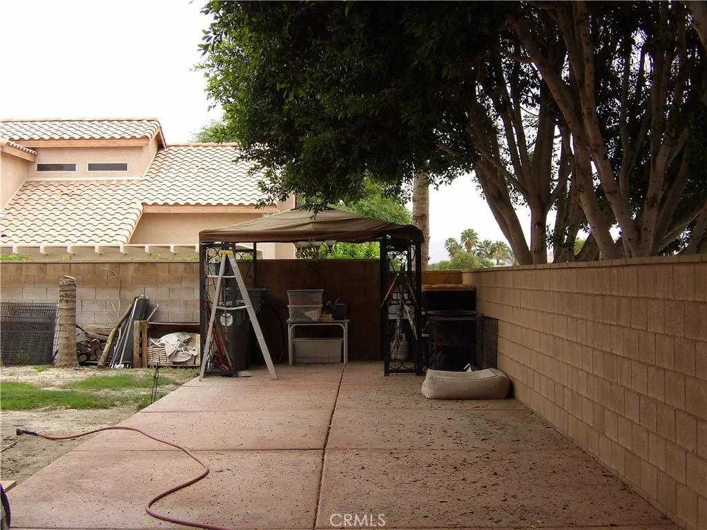 Welcome to Bella Vista in North La Quinta! Near 2 major valley thoroughfares, Schools, Shopping, Dining, Places of worship as well as the IW Tennis Gardens, yet the home is tucked away in a quiet Cul-de-sac street. The home features a large corner lot with enough rear space for a pool and the side space with the gate and concrete pad large enough for your RV and or misc. toys is already in place, not to mention the mature trees providing the much needed shade over the entire concrete area. The home is spacious and although not updated to the recent trends, it is ready for you to bring your own ideas and make it all you! A huge primary bedroom downstairs with a double sided fireplace, the jetted tub, a separate shower, walk in closet and a dual vanity. The second downstairs bedroom could also be an office. A second bathroom downstairs, then off we go into the family room, make our way into the kitchen area and around to the living/dining combination area with another fireplace to enjoy. Upstairs we have 2 bedrooms that connect with each other as they share the third bathroom. Last but not least, the spacious garage.. there are currently 2 open spaces, the third was converted into a small bedroom years ago. It could either remain a bedroom or it could be an office, work out room, it can be whatever you want it to be. Additional notes: IID electric for greater energy savings, Shutters throughout, RV space approx. 11'w x 56'L.