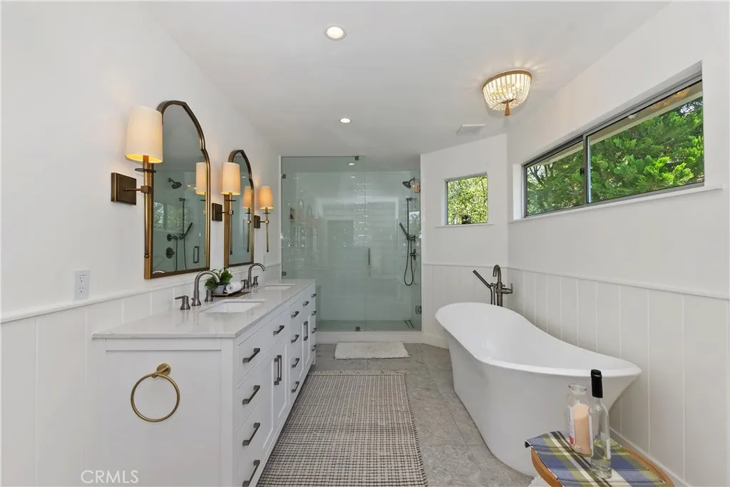 Nestled in the heart of the prestigious Alpine community of Lake Arrowhead, this stunning home has been meticulously transformed into an elegant, contemporary retreat. Walk out the back door & into the National Forest! The heart of the home is a truly spectacular, newly expanded kitchen boasting top-of-the-line appliances, sleek countertops, and an abundance of custom cabinetry. Ideal for entertaining, the kitchen opens seamlessly to the dining area and inviting living room, where a warm and welcoming fireplace serves as the perfect gathering spot for cozy evenings. Natural light floods most rooms, enhancing the homes airy ambiance and inviting feel. A charming enclosed porch provides the perfect place to relax and take in the serene landscape. Stepping outside, the level backyard offers an inviting outdoor oasisideal for al fresco dining, morning coffee, or unwinding beneath the crisp mountain sky. This remarkable residence features 4 spacious bedrooms & 5 well-appointed bathrooms. The master suite is a true sanctuary, offering peaks of the lake & a spa-like en-suite bathroom. A generous family room with a 2nd fireplace provides additional space for entertainment, recreation, or quiet enjoyment. Whether used as a media lounge, game room, or casual gathering space, this versatile area ensures comfort and convenience for every lifestyle. The den upstairs offers an additional separate gathering area, too. Beyond its impeccable interior, this home is ideally located within the exclusive Lake Arrowhead community, where homeowners enjoy private lake access. The breathtaking natu