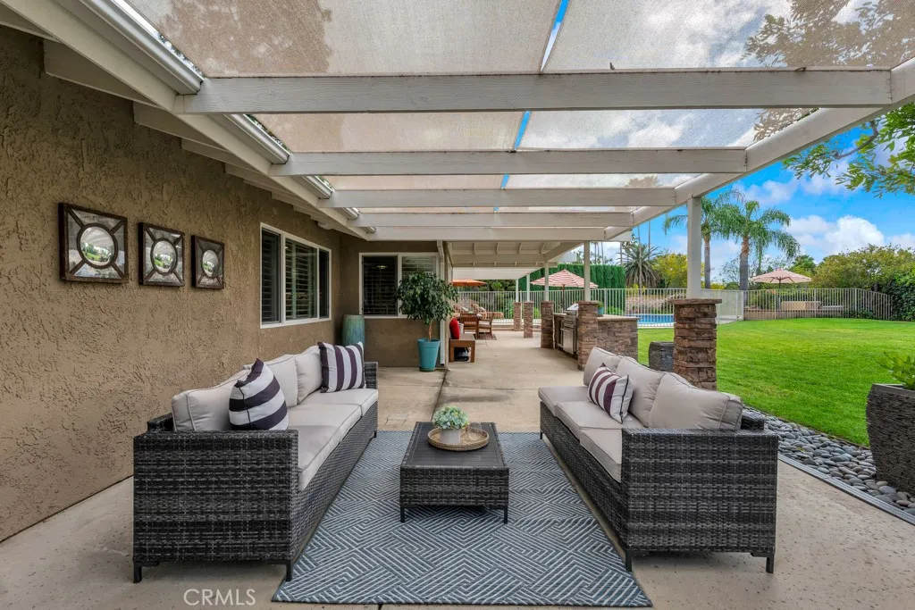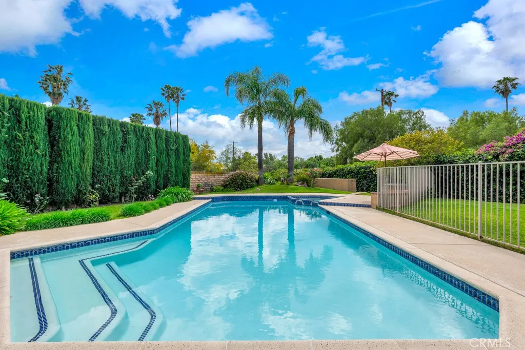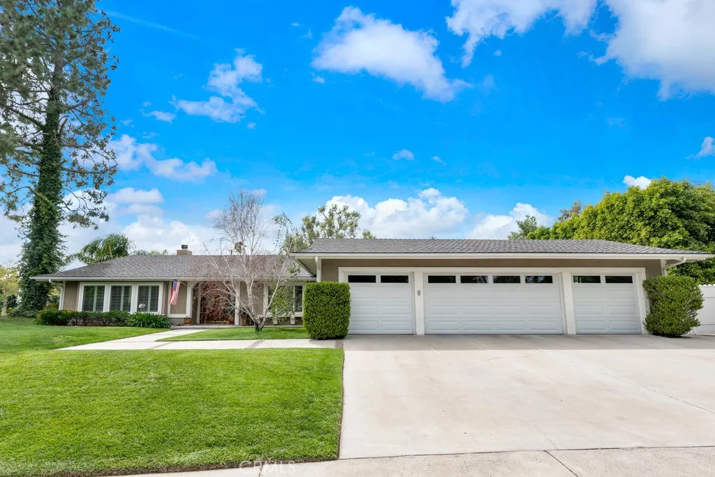 Located in the highly desirable Carriage Estates community west of Topanga, this exceptional single-story home offers the perfect blend of elevated everyday living and true entertainers appeal. Situated on a nearly half-acre, fully usable lot, properties like this...with space, privacy, and flexibilityrarely come to market. The home features a bright and open floor plan with soaring ceilings, abundant natural light, and hardwood flooring throughout. Thoughtfully upgraded with custom cabinetry throughout the home, including the kitchen, along with extensive storage and a striking double-sided fireplace, the residence blends warmth, functionality, and design. An integrated indoor and outdoor sound system enhances both daily living and entertaining. Designed with lifestyle in mind, the layout flows seamlessly to a private resort-style backyard featuring a gated pool and spa, an expansive covered patio spanning the entire rear of the home, and a built-in barbecue with refrigerator;ideal for hosting, outdoor dining, and enjoying warm California evenings under mature shade trees with stunning sunset views of the Chatsworth Hills. A true highlight of the property is the fully finished four-car garage, complete with high-quality built-in cabinetry. This versatile space offers incredible flexibility...perfect for a car enthusiast, workshop, home gym, creative studio, or additional lounge space. The spacious primary suite offers a large walk-in closet and a beautifully updated bathroom, while the additional bedrooms are generously sized and complemented by tastefully renovated bathro